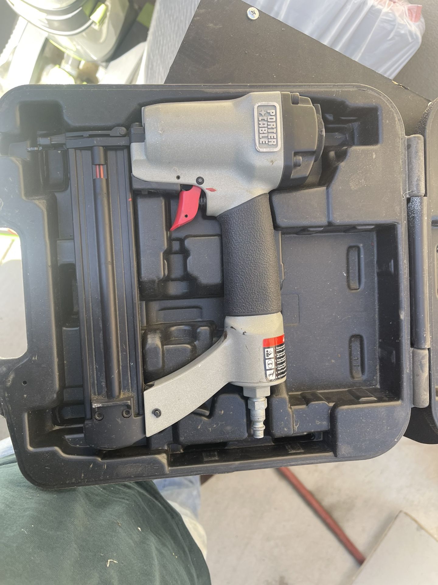 🔧 Pistola de clavos neumática PORTER-CABLE en excelente condición 🔧 Lista para trabajar 💪 Ideal para carpintería, molduras, trabajos de acabado y proyectos en casa. ✔️ Marca: Porter-Cable ✔️ Tipo: Clavadora neumática (usa aire) ✔️ Muy ligera y fácil de manejar ✔️ Incluye estuche original ✔️ Ajuste de profundidad ✔️ Disparo preciso y rápido ✔️ Compatible con clavos de acabado (brad nails) 💰 Precio: $___ (negociable) 📍 Entrega en Stockton, CA ⚠️ Si está disponible, no pregunte si está disponible 📩 Mándame mensaje directo para más información --- 🔧 Porter-Cable Pneumatic Brad Nailer – Great Condition 🔧 Ready to work 💪 Perfect for trim, finish carpentry, and DIY projects. ✔️ Brand: Porter-Cable ✔️ Type: Pneumatic (air-powered) ✔️ Lightweight and easy to use ✔️ Includes original case ✔️ Depth adjustment ✔️ Smooth and precise firing ✔️ Uses brad nails 💰 Price: $65. negotiable) 📍 Pickup in Stockton, CA ⚠️ If it's posted, it's available 📩 Message m