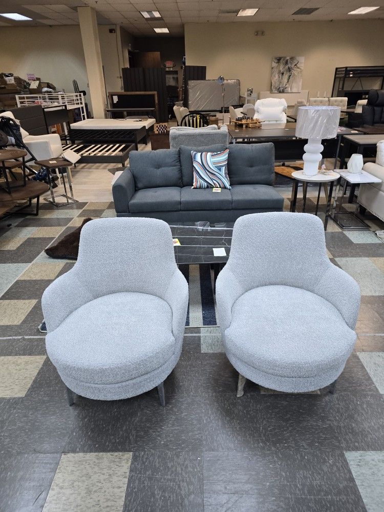 Big Outlet Sale BRAND NEW REVERA Armchairs (Set of 2) Upgrade your living space with this elegant pair of REVERA armchairs, blending modern design with comfort and durability. Dimensions: 28 × 29 × 31 in (72 × 75 × 80 cm) Support Up To 400 lbs Materials: Wood, Fabric, Inox Color: Light Gray Upholstery with Silver Accents These chairs offer a perfect balance of style and functionality, making them a sophisticated addition to any contemporary interior. Brand new in boxes. Outlet Price: $200for the set of 2