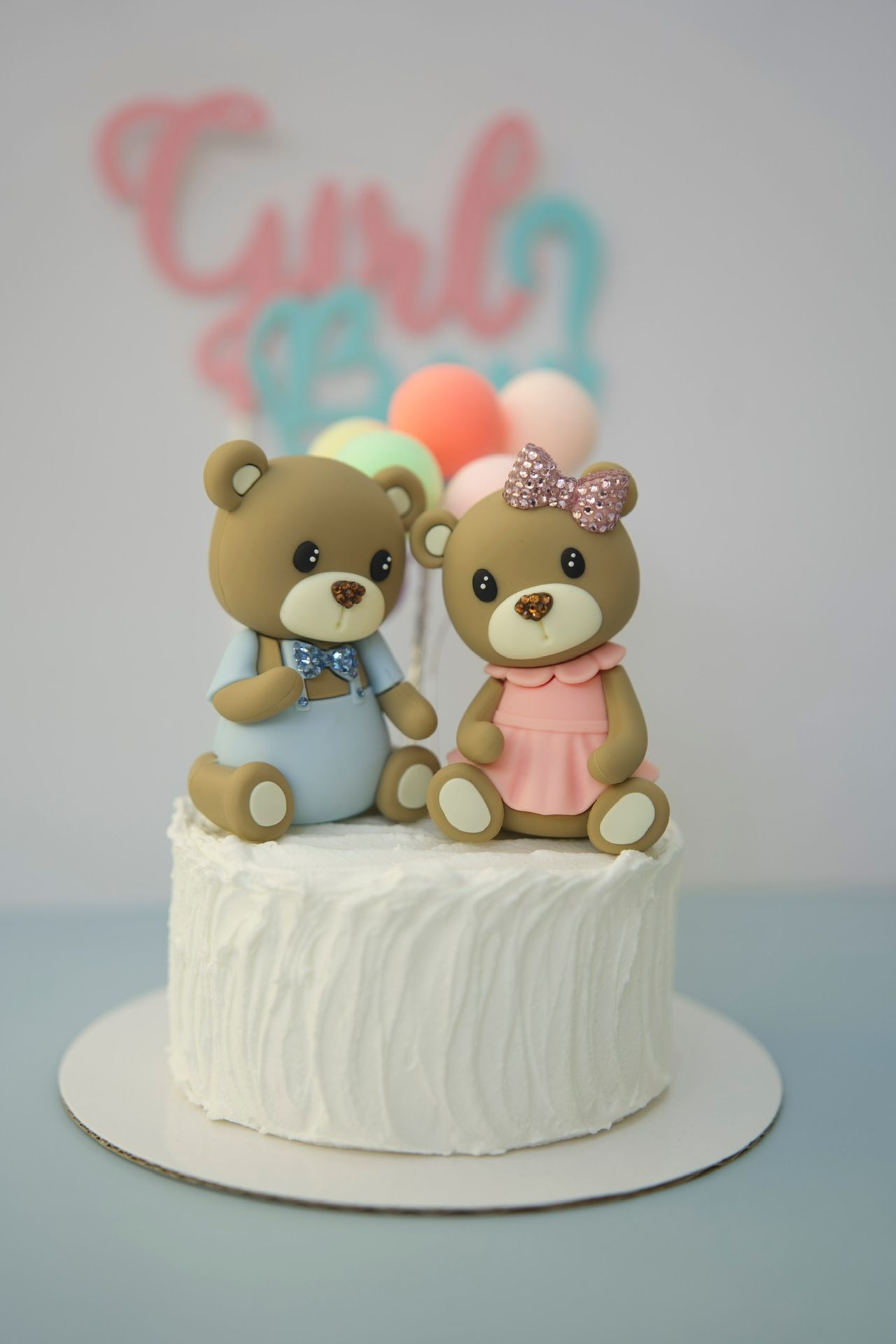 Baby Shower Teddy Bear Cake Toppers Boy & Girl Gender Reveal Party Decorations
