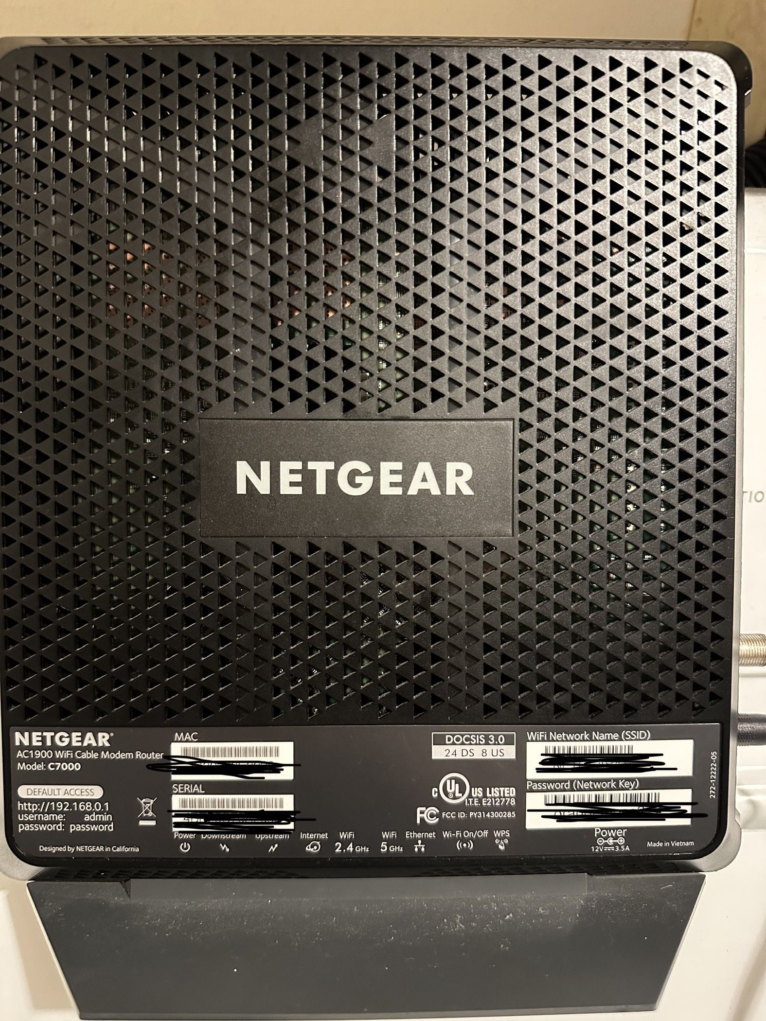 NETGEAR Nighthawk Cable Modem WiFi Router Combo C7000-Compatible with Cable Providers Including Xfinity by Comcast, Spectrum, Cox for Cable Plans Up to 600Mbps | AC1900 WiFi Speed | DOCSIS 3.0