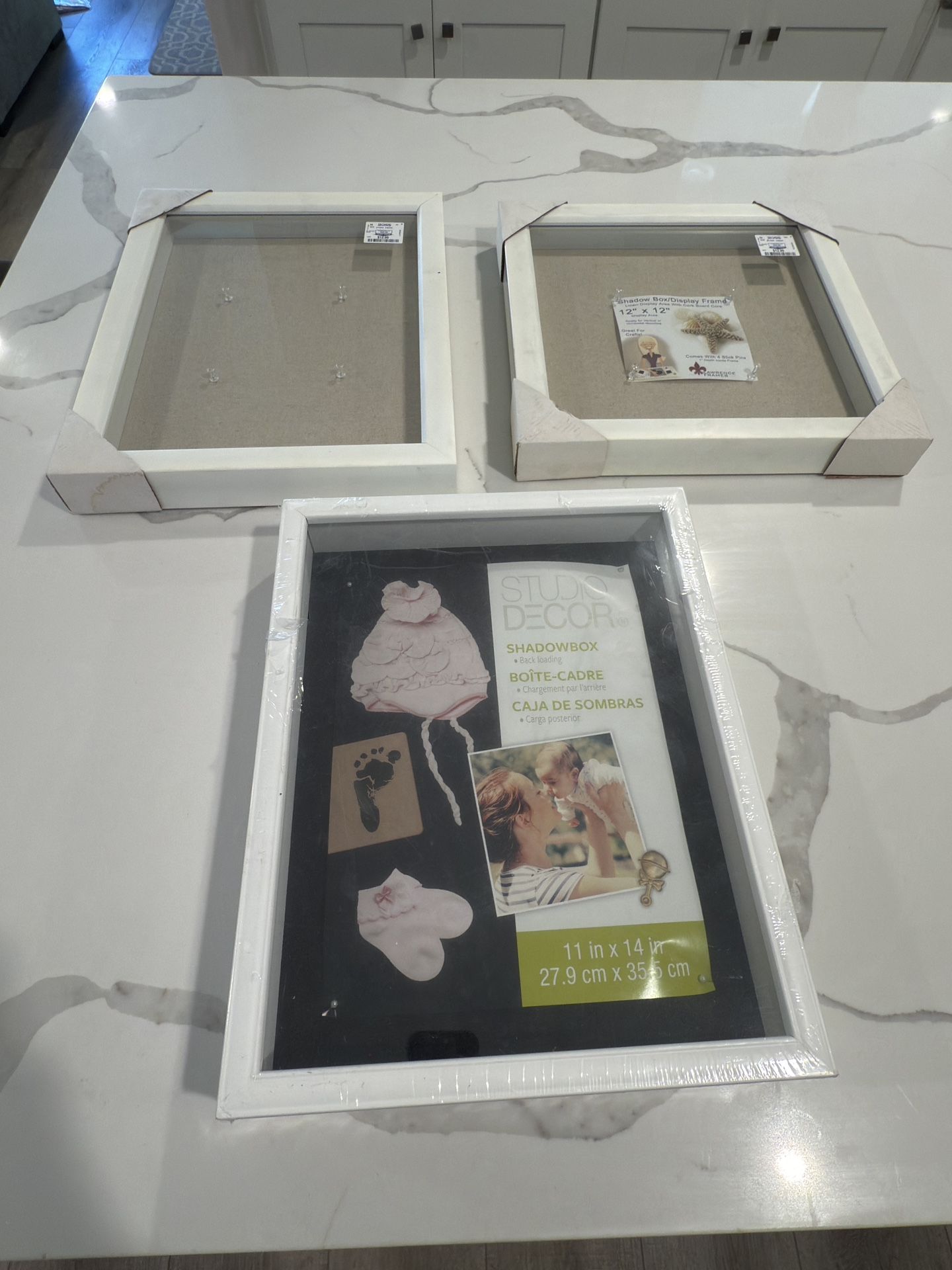3 shadow box display frames 1- 11”x14” 2- 12”x12” All 3 for $30