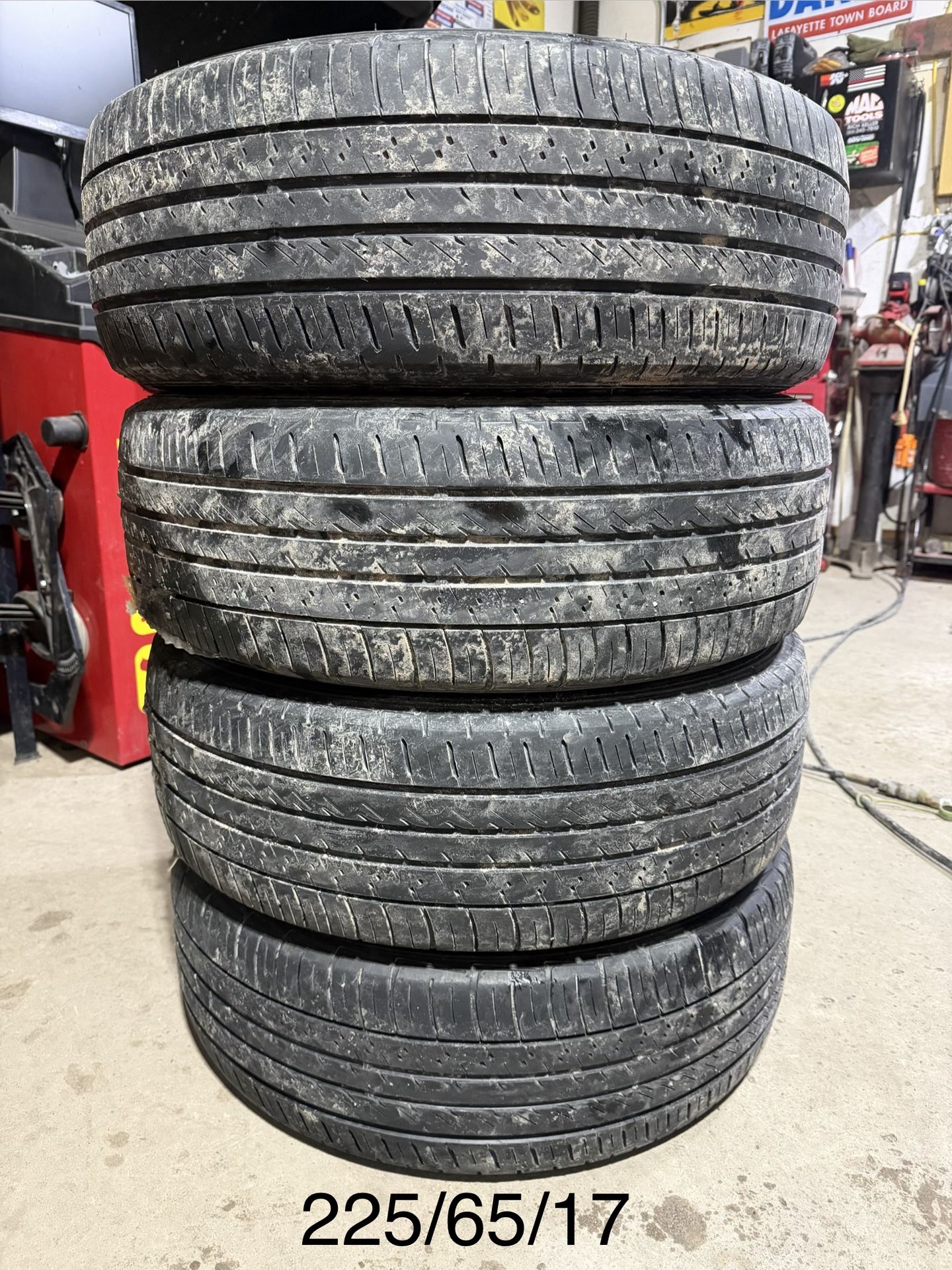 (4) - 225/65/17 Sumitomo Enhance HTR Tires Tread - Approximately 6/32nds Condition - No plugs, no dry rot, no shifted belts. Tires hold air and pass state inspection.