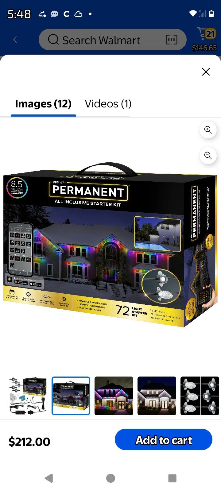 New in Box: AppLights PERMANENT™ All-Inclusive Starter Kit Tired of hanging and taking down lights every year? This kit is the perfect solution for permanent, year-round holiday and accent lighting for your home! Key Features: Permanent Installation: Designed to be installed once, typically under the eaves, and left up all year. Smart Control: Connects to a mobile app (AppLights PERMANENT™) via Wi-Fi for total control. Total Customization: Features RGB LED lights with millions of color and effect combinations. Customize light shows for every holiday (Christmas, 4th of July, Halloween, etc.) or set a simple accent color. All-Inclusive Kit: Includes everything needed for installation (lights, control box, power supply, and likely mounting hardware/covers). Bulb Count: Contains 72 individual LED lights. Flexible Design: The kit often comes with optional detachable Christmas bulb covers for a more traditional holiday look (as seen in the image). Kit Details: Brand: AppLights PERMANENT™ Number of Lights: 72 LED Bulbs Condition: Brand New in the original, sealed box
