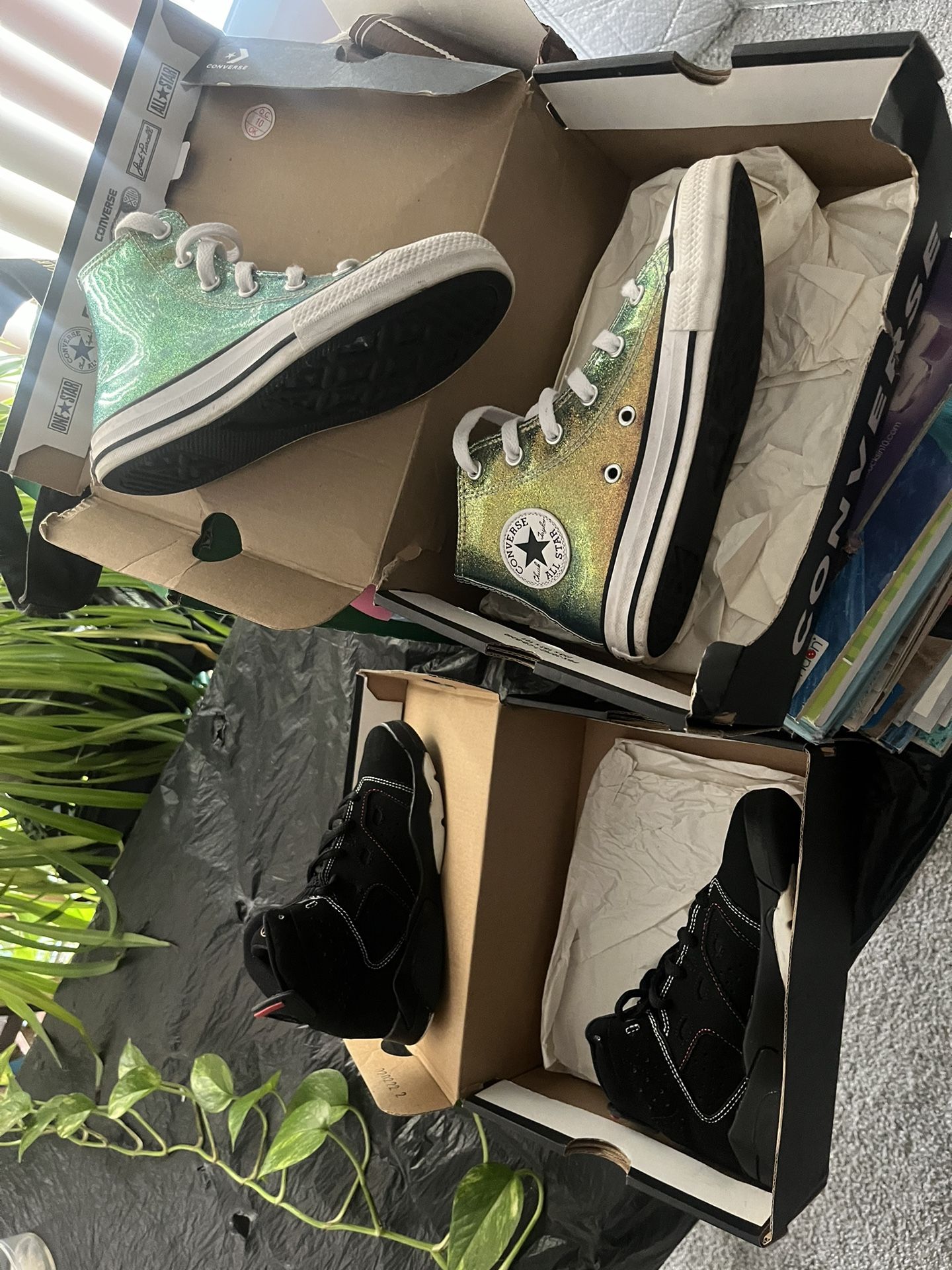 Jordan’s And (Converse Glitter Color)..Size 1 Big kids..$50 & $55..