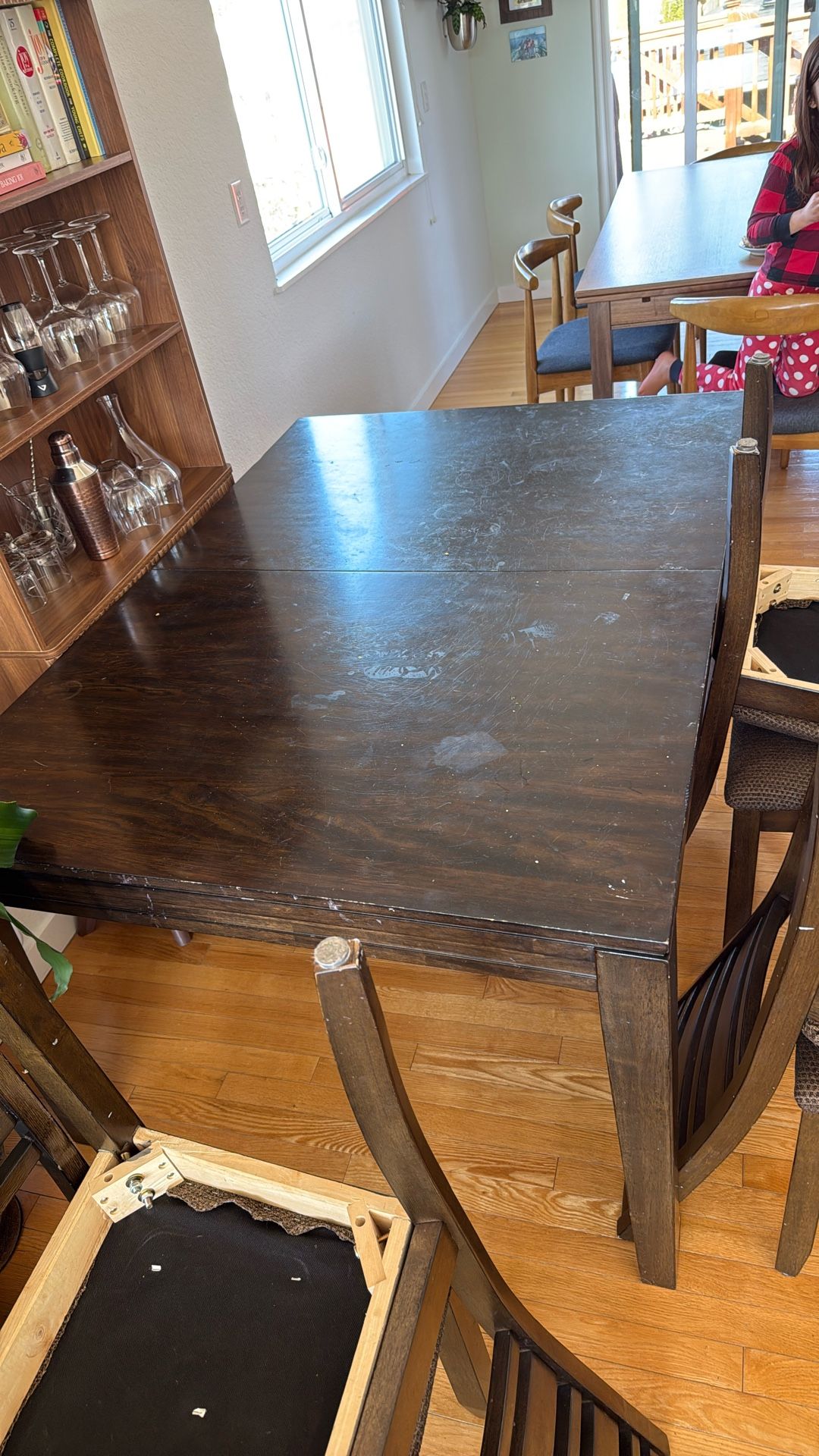 Minor cosmetic damage on top of table, comes with six chairs. You haul away