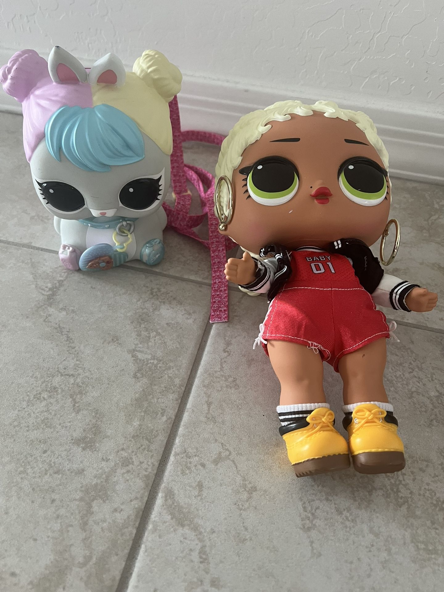 Surprise, big baby doll lol. Doll . brand new compared my last picture at the store $79 just the doll with me you have pet & a doll for 1/2 price $40 for set I have 2 set location. W. Lone Mountain parkway . N. el mirage rd. Peoria cash pickup only set $20 each set
