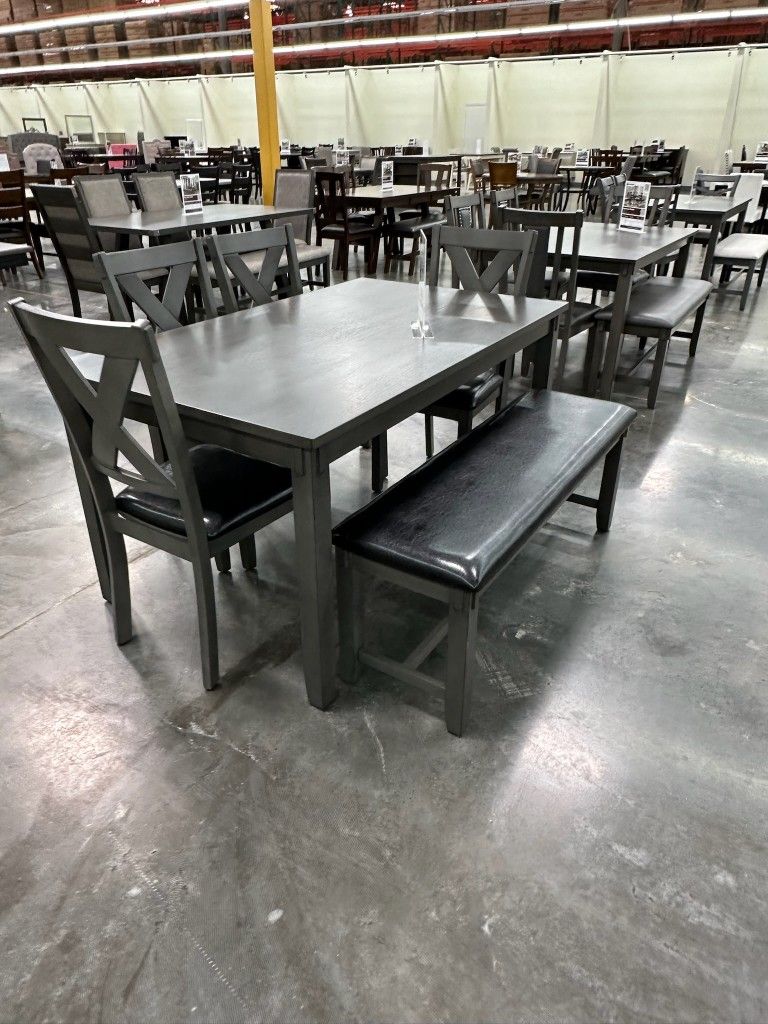 6 PC Dining Set. 1table+chairs+bench. ☄️ Comedor De 6 Piezas 1 Mesa+4sillas+1bench