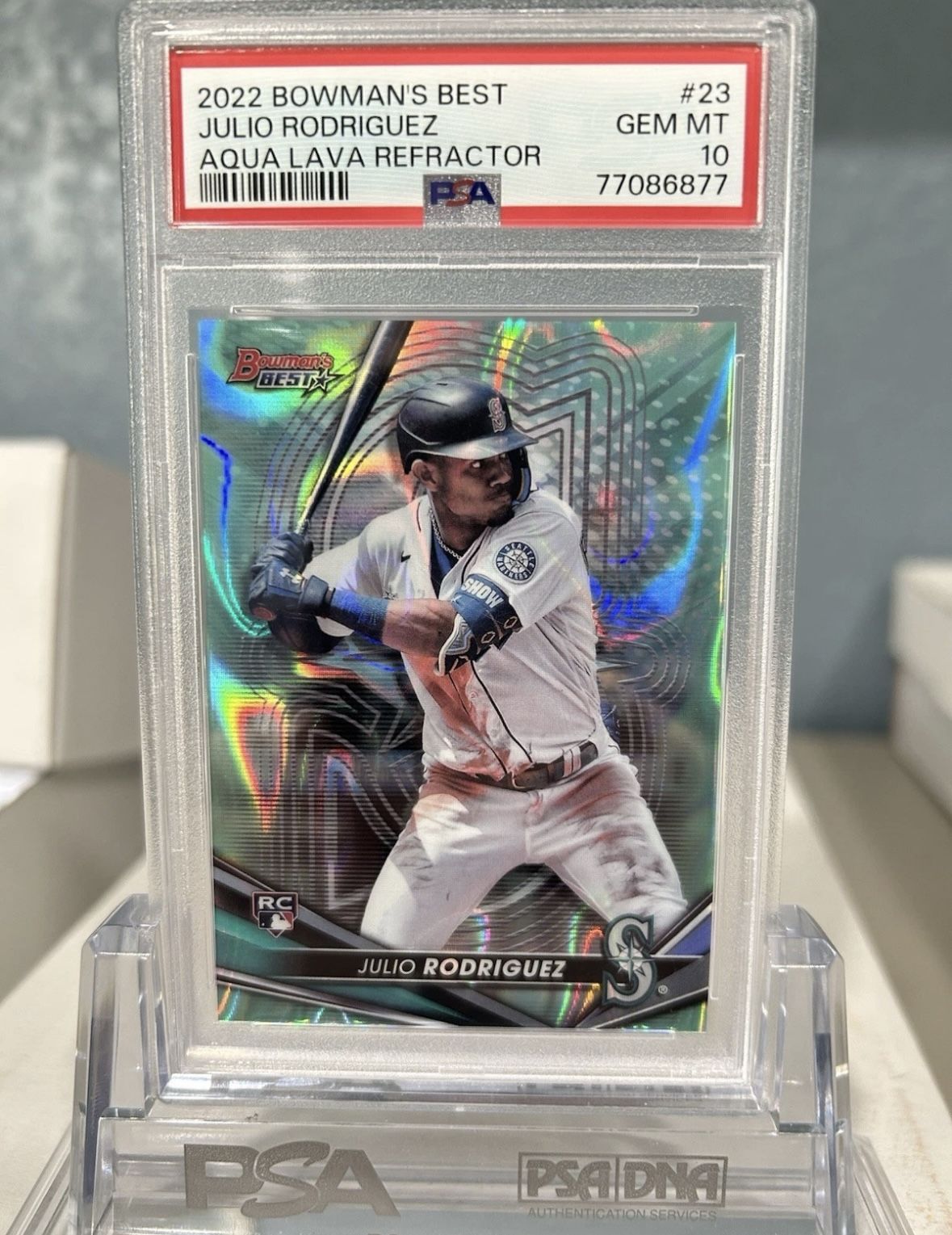 Seattle mariners fan favorite MLB JULIO RODRIGUEZ Aqua lava refractor numbered rookie card Bowman's best PSA GEM MINT 10