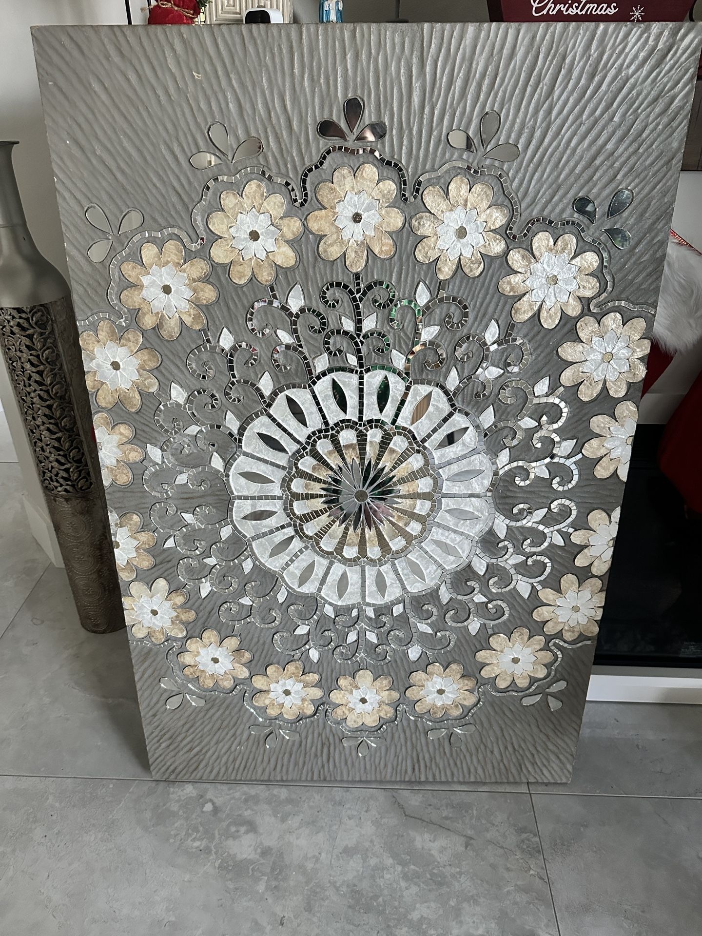Floral Hand Carved Mosaics Wall Decor 48”X 31.5”