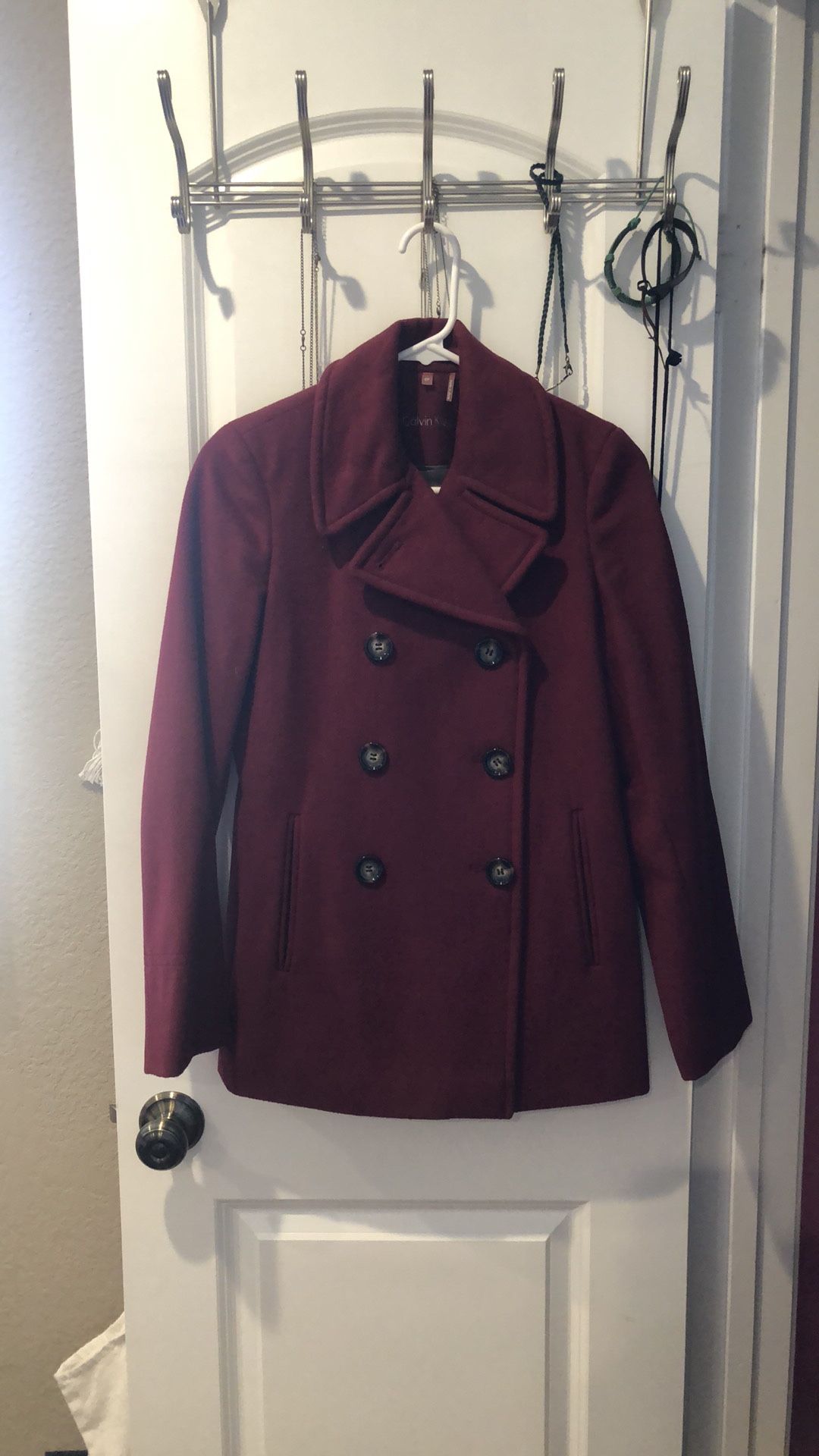 Calvin Klein wool-cashmere peacoat. 0 petite , burgundy / red , lightly used , originally $154