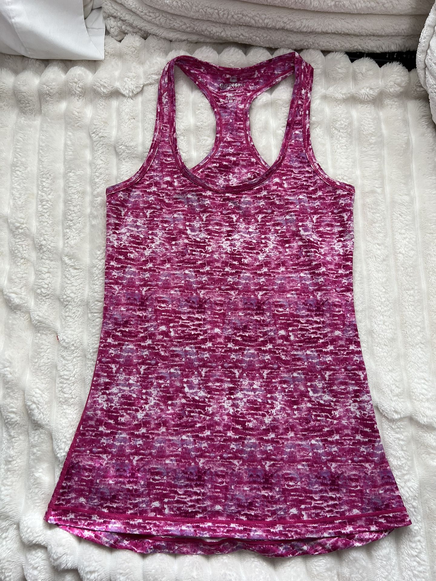Only worn once! In perfect condition! No snags no tears. Stylish marbled pink racer back tank top. Ideal for workouts or casual wear. Soft and comfortable fabric.