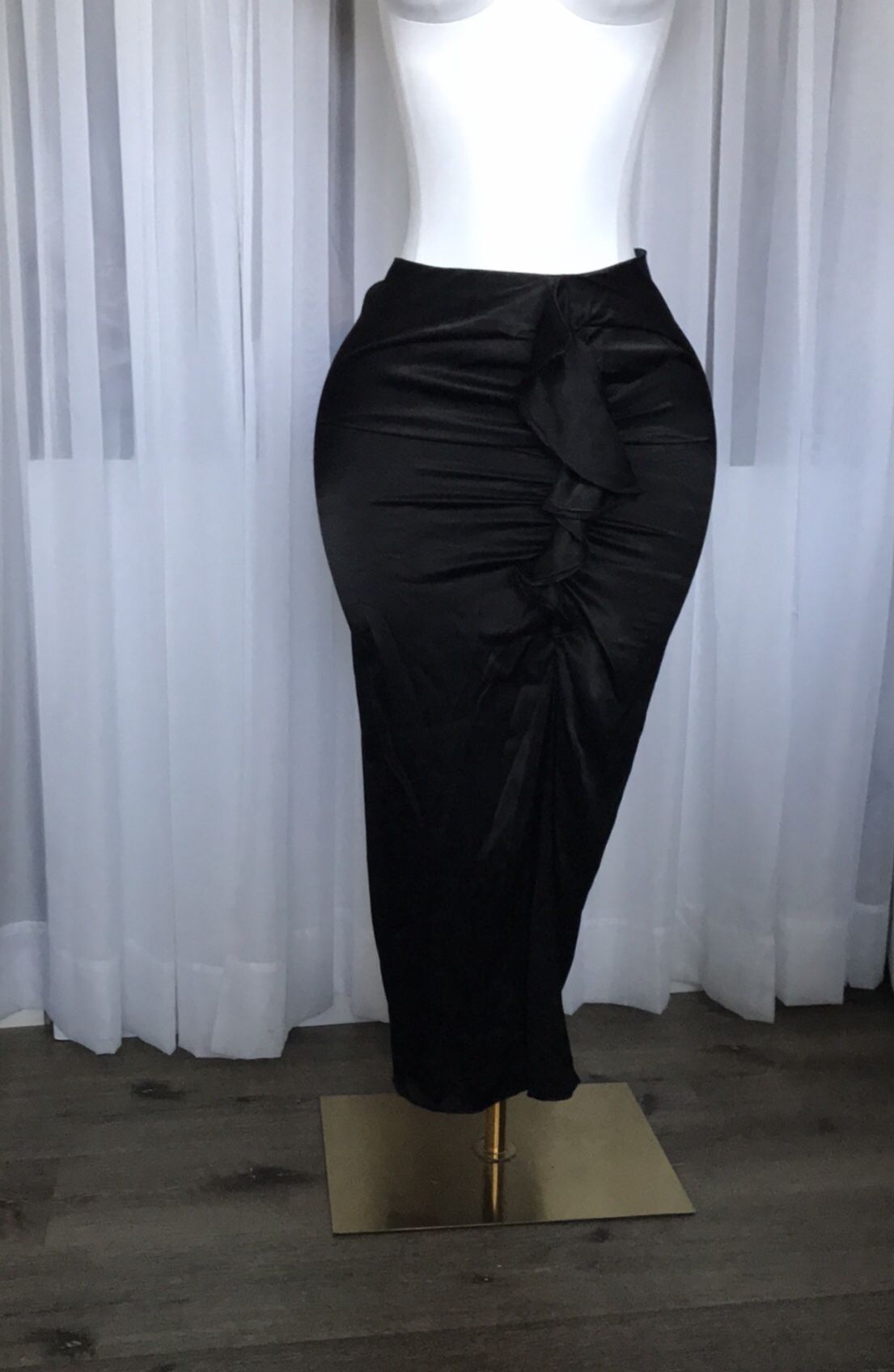 Black Satin Slit Midi Skirt Size L