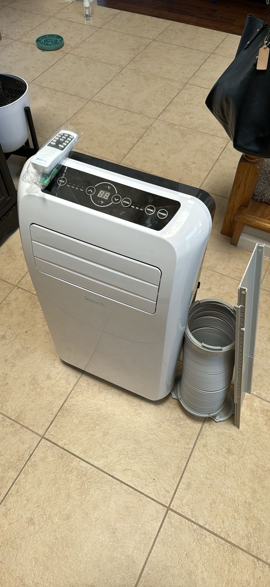 Sarenelife, portable air conditioner, fan, and heater. comes with remote and window attachments. Features 9700 BTU, multiple speeds, swing mode. Great unit we used it when our homes ac was undergoing repairs and it put out alot of cold air to keep our kitchen and living room cool