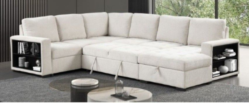 Brand New Beige Sectional Sofa Storage Sleeper