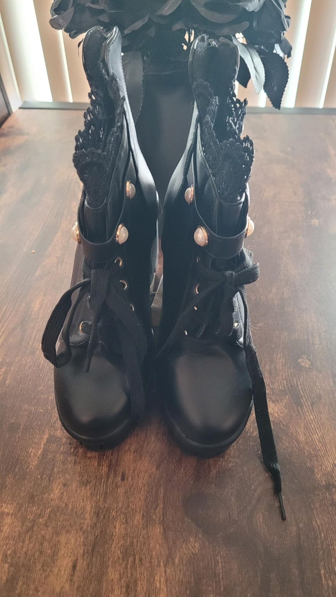 Foreada black & gold high heel booties. Size 8 in women’s. Brand new and never worn.