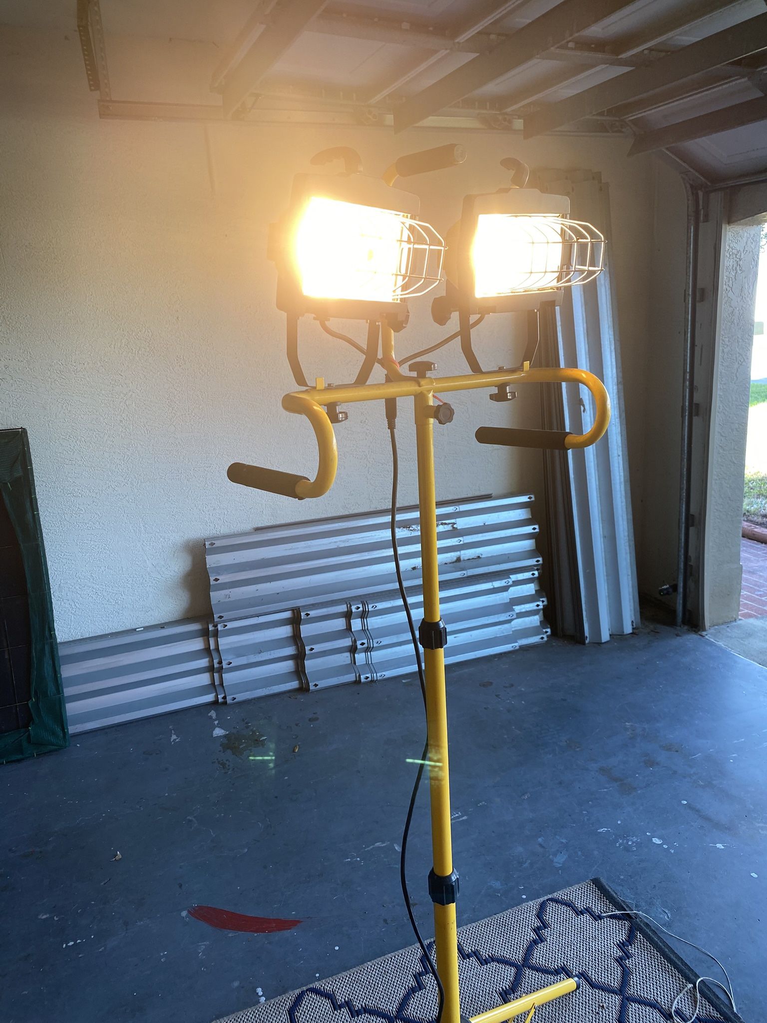 Double construction light on tripod. 6 foot. Works in a great condition.