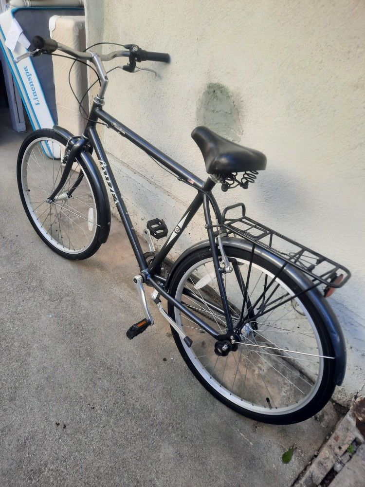 Used bike as is Rack in the back Aluminum flame No flat tires