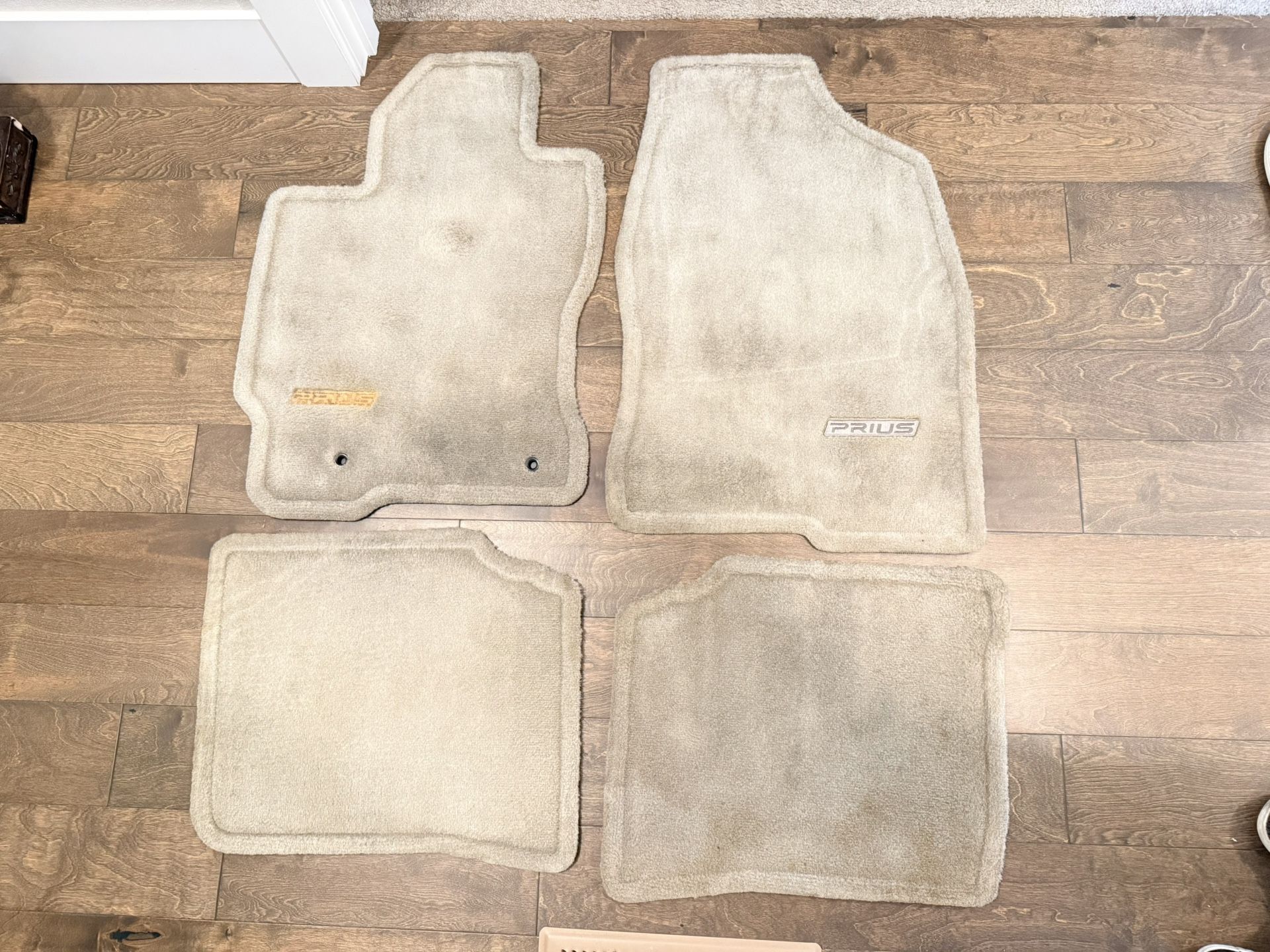I have for sale a complete set of floor mats &. trunk mat for 2nd generation Prius (2004-2009). They are in good condition. Price: $20 If you would like to have them look like new, I can arrange to have them cleaned with a hot water carpet extractor and steam cleaner for a small fee.