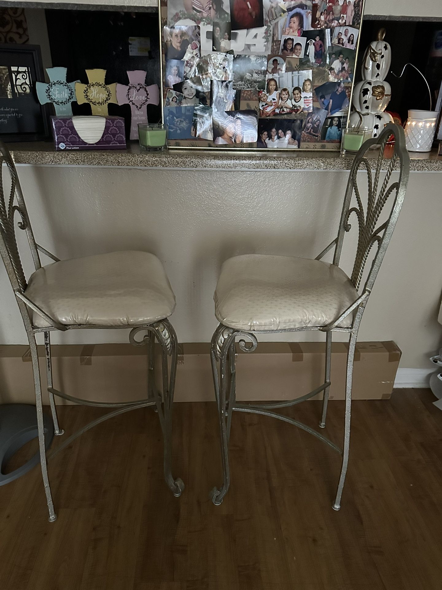 Barstools plastic still on seats