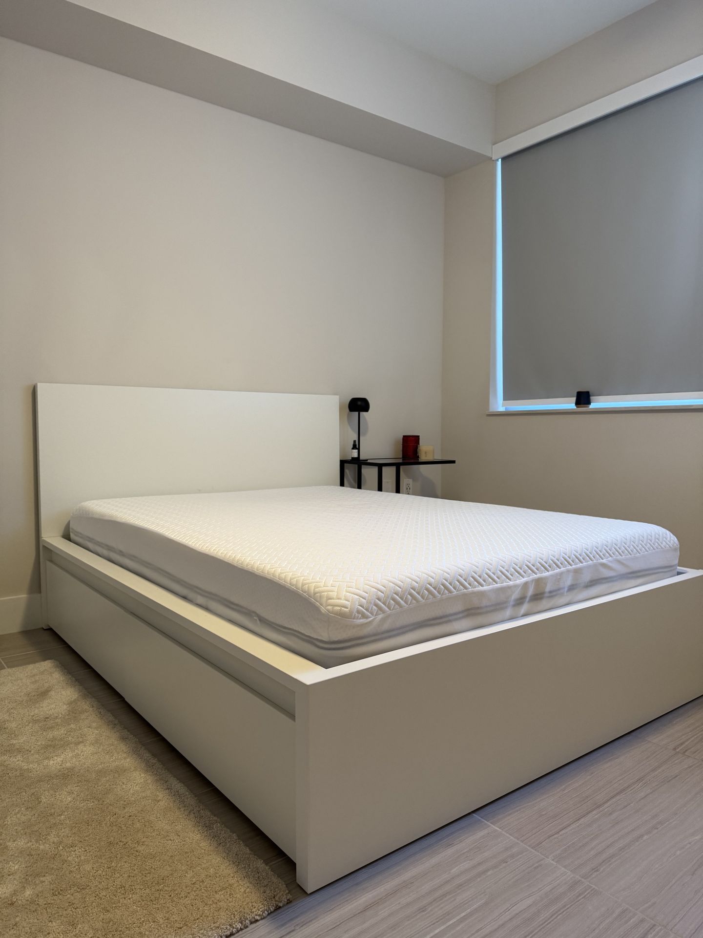 For sale: bed (full size) with mattress (medium firmness) Bought at IKEA, used for one year, excellent condition. A couple of minor defects on the headboard. Includes protective mattress cover. Pickup in Downtown Fort Lauderdale