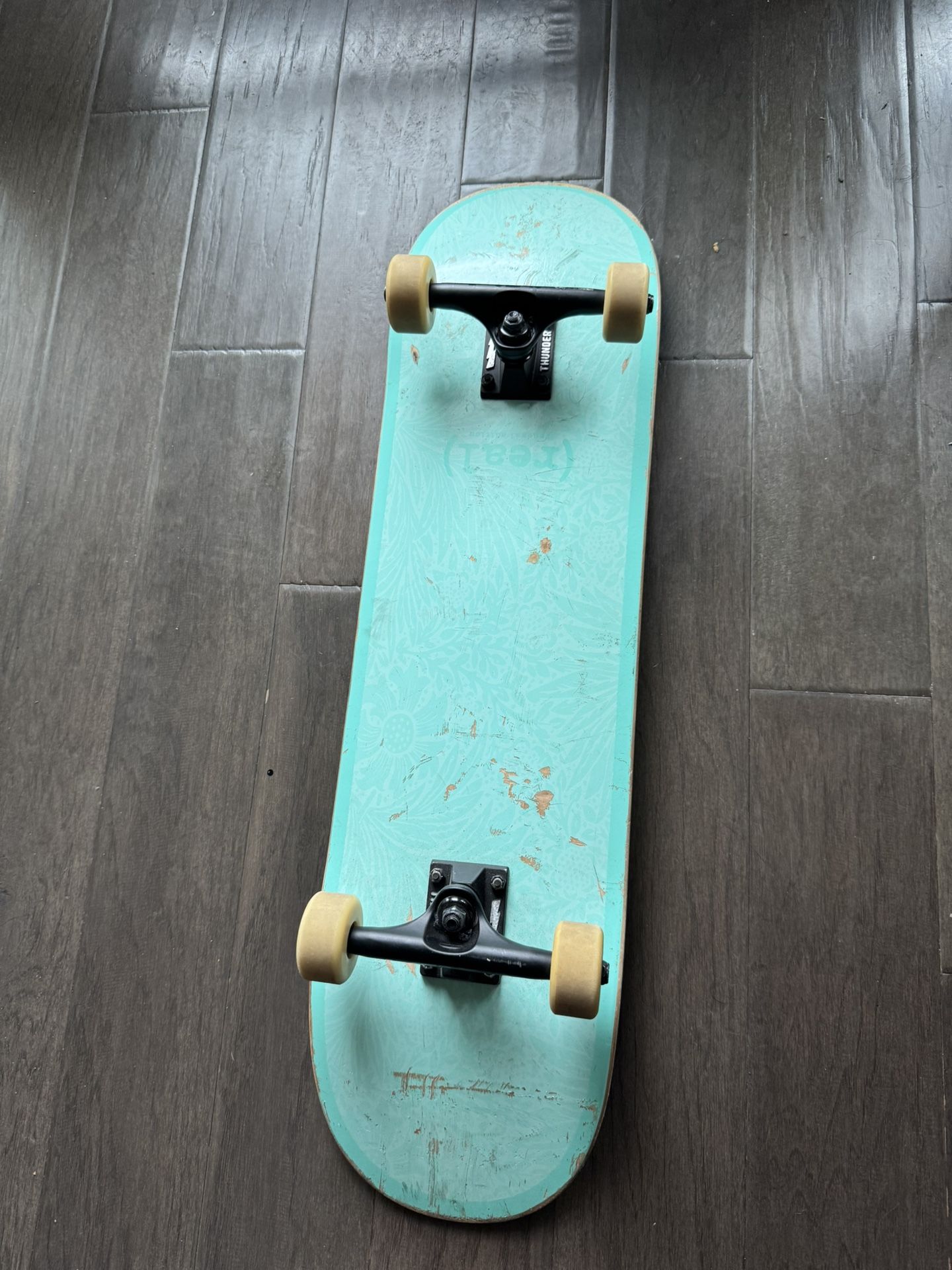 Used Real board with thunder trucks, spitfire wheels and Bronson speed bearings Been sitting for a few years and won’t use ever again.