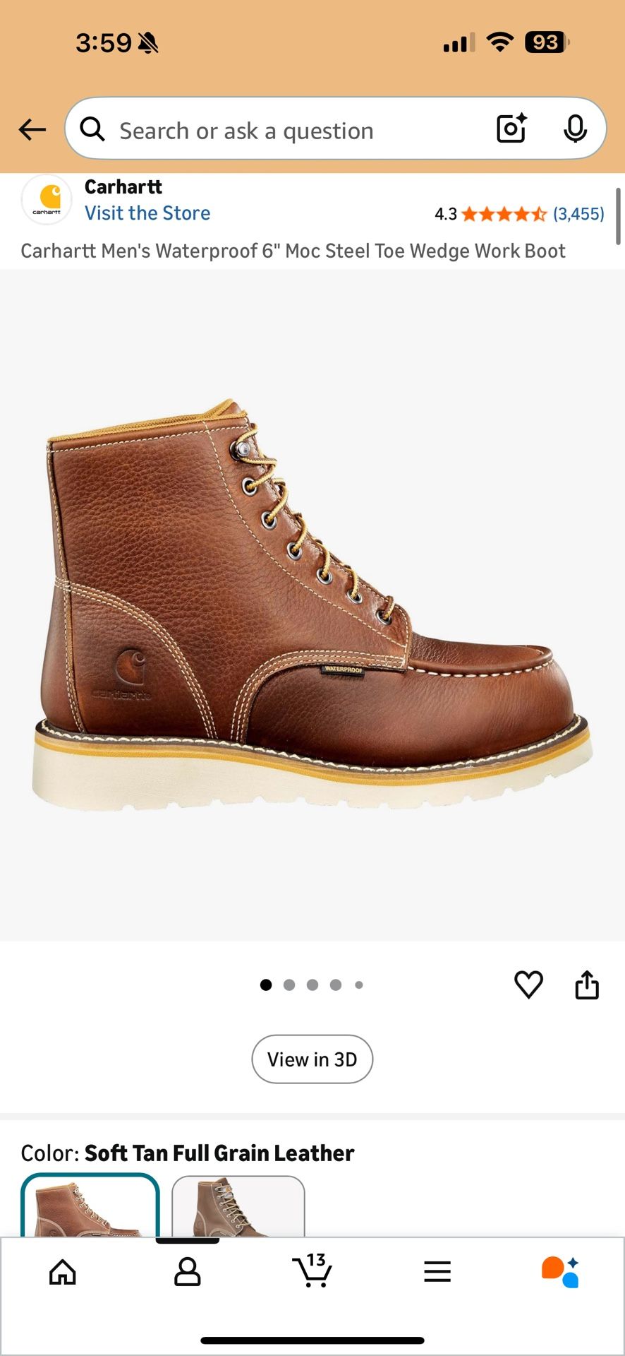 Men’s work boots Brand new Size 9.5 Carhartt Men's Waterproof 6" Moc Steel Toe Wedge Work Boot