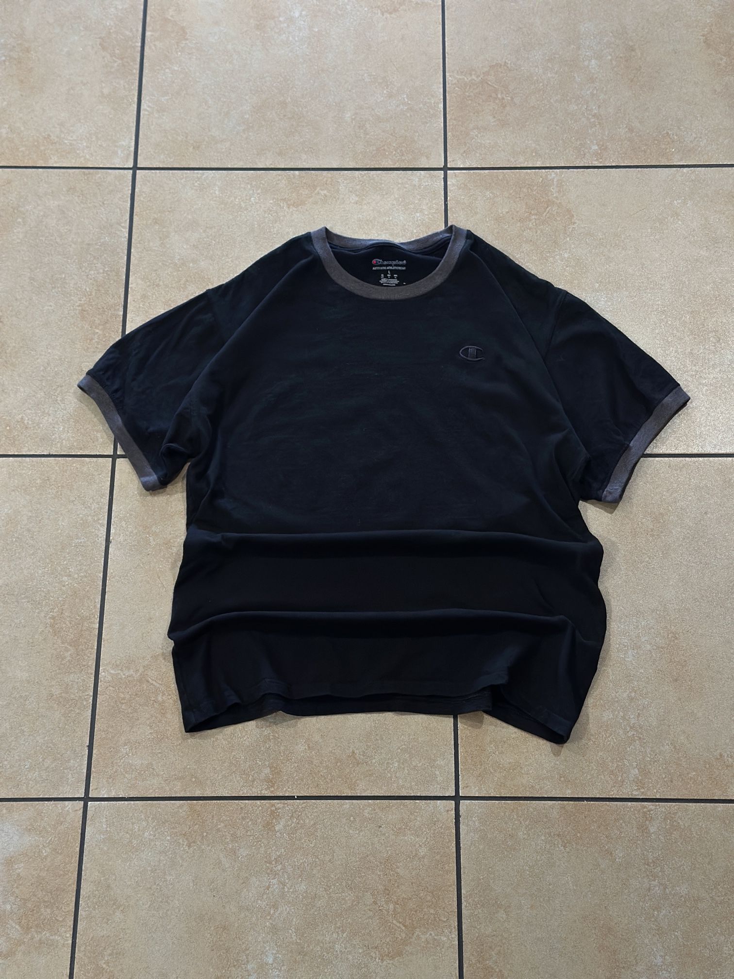 Champion T-Shirt Men Size Large Black/Gray Collared Sleeves Classic Ringer Tee •condition 9.5/10 small rip in pic •100% cotton! •pickup in Buena Park 📍