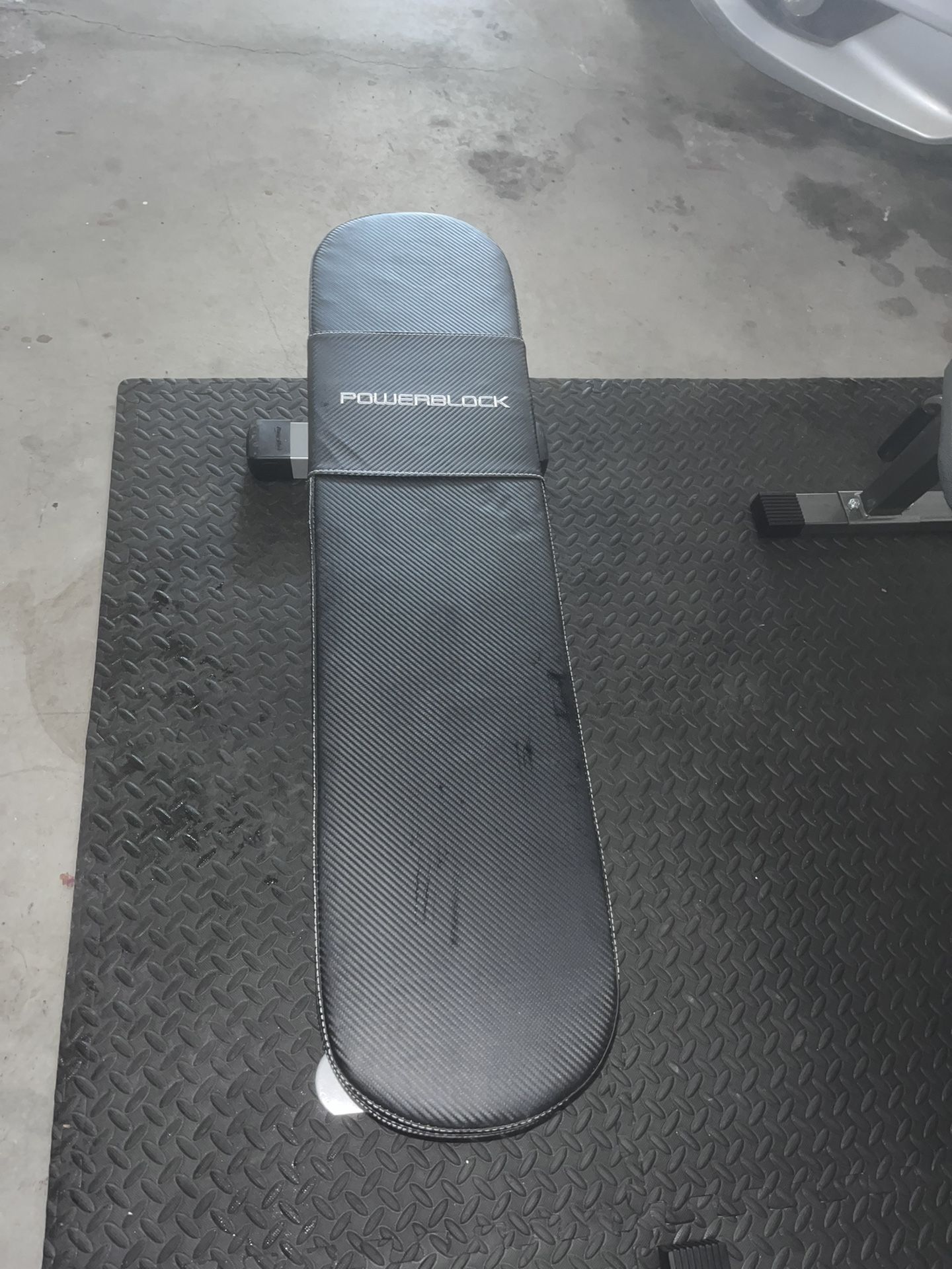Powerblock travel bench - Flat bench with folding legs for storage.