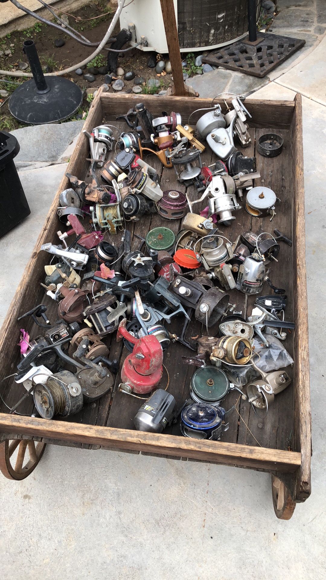Crate full of Fishing Reels in beed of Repair-Shimano,Daiwa,Penn and more.ALL reels are in need of repair or parts so selling everything in crate as parts.$20 for all reels in pictures.Santa Clarita for pick up near Plum and Bouquet Canyon Road