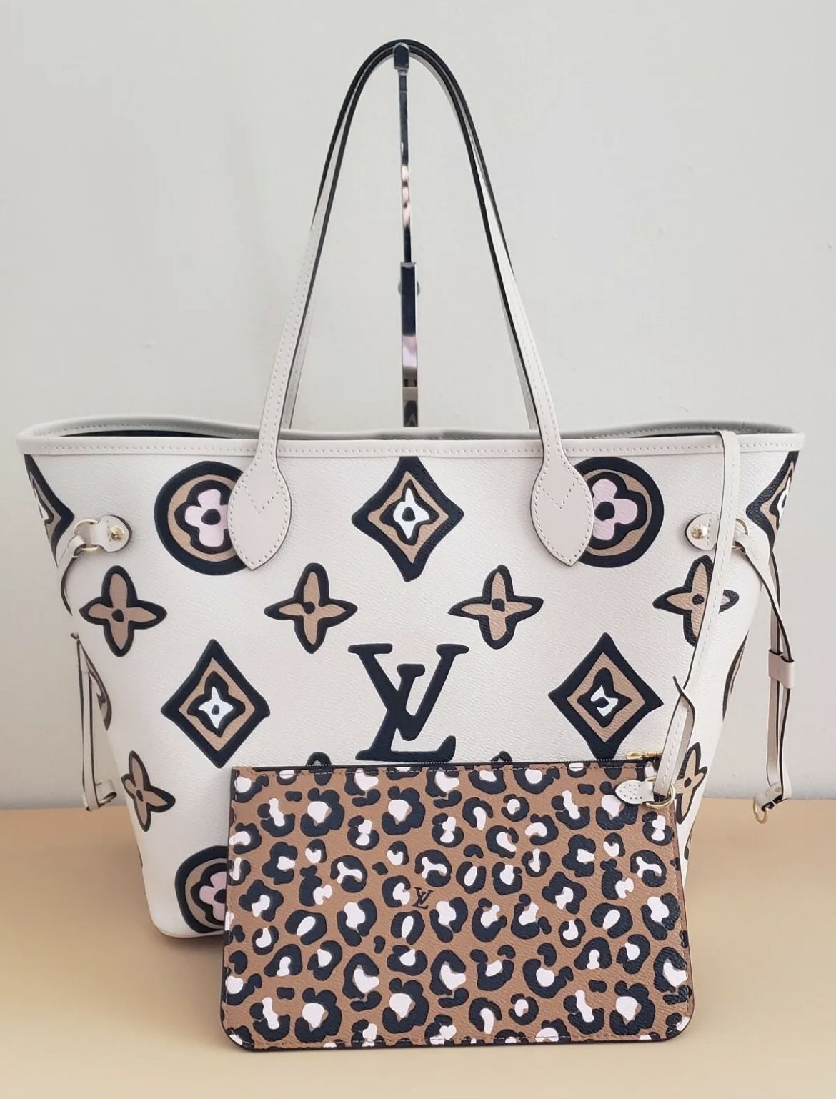 Limited Edition Louis Vuitton Wild At Heart Neverfull MM Crème Black Tote Shoulder Bag