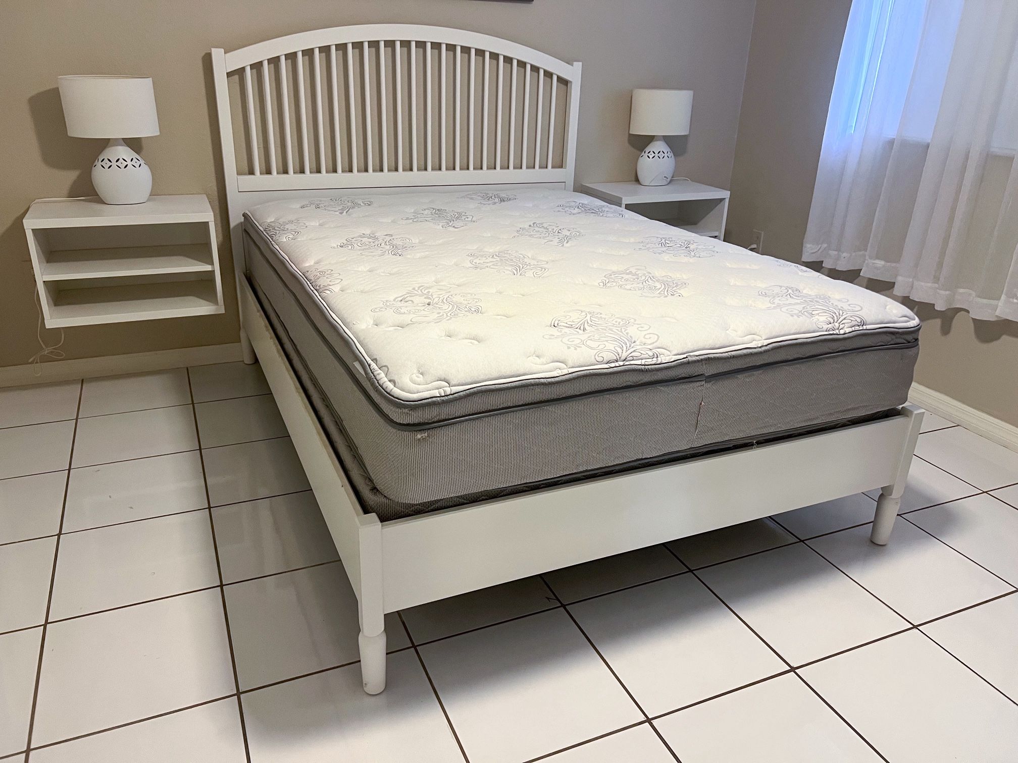 IKEA White Queen Size Bed frame, 2 Floating Nightstands, 6 Drawer Dresser.