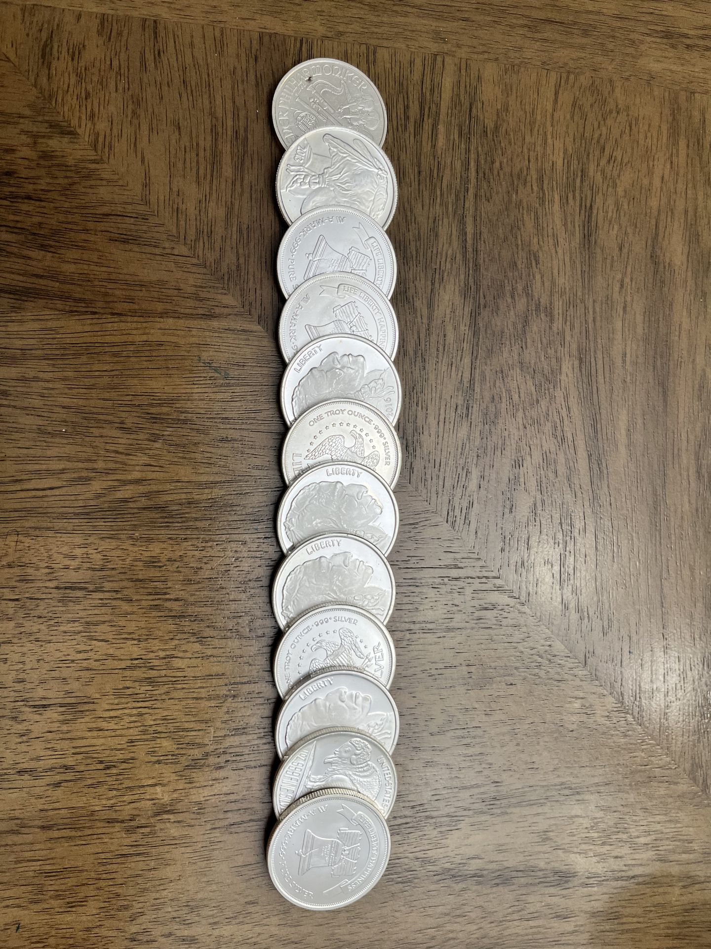 Selling 12, 1 ounce silver coins for $850 will not sell them separately. They will be sold all together.