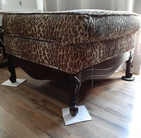 Vintage Leopard Print Ottoman