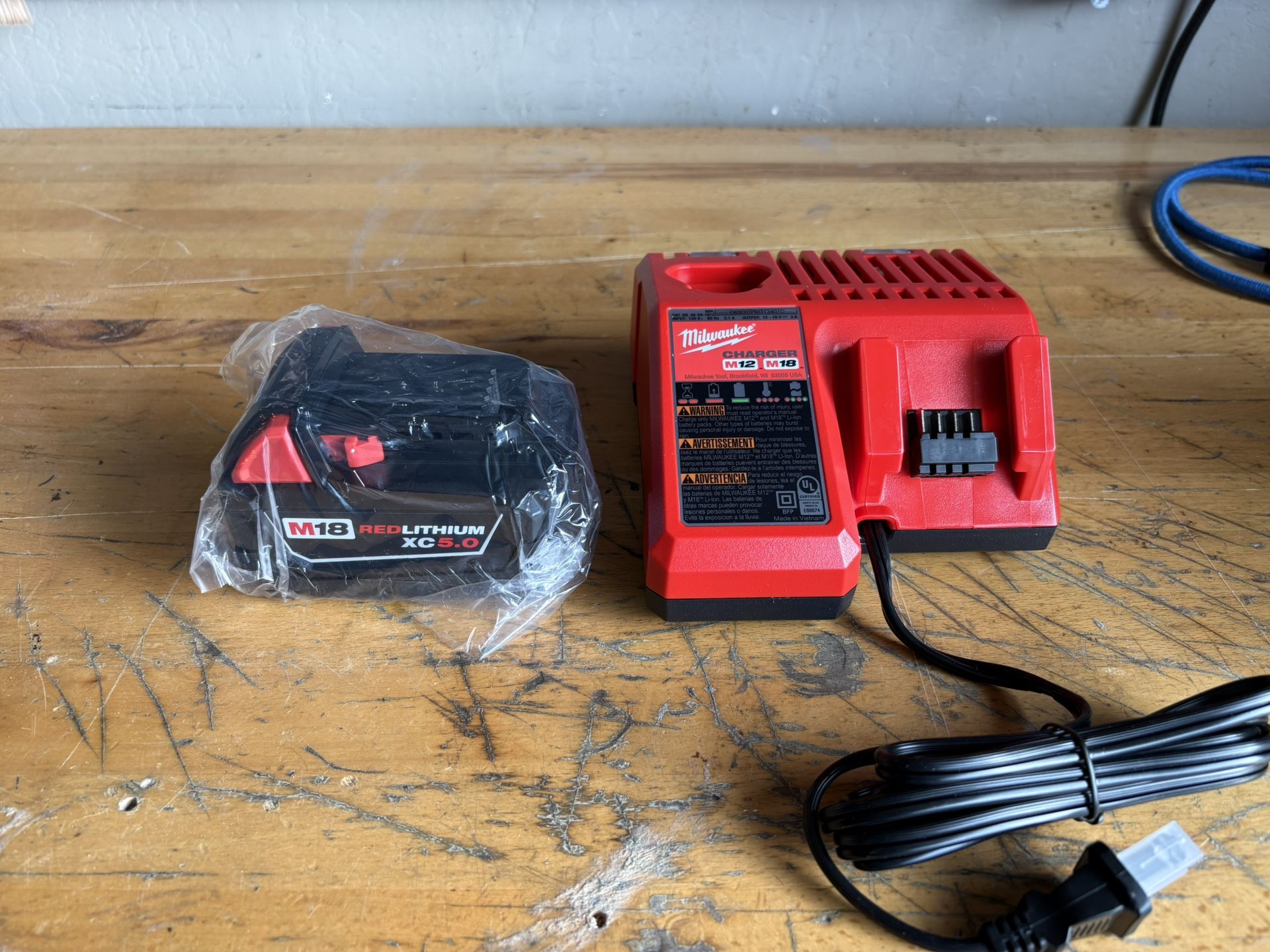 Milwaukee M18 XC 5.0 Battery With Charger. Brand new battery and charger.