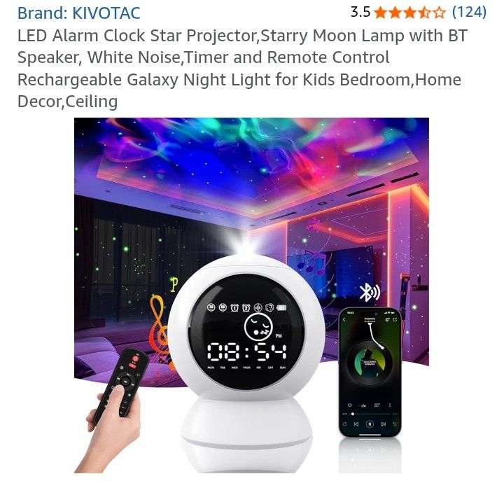 NEW IN BOX LED ALARM CLOCK STAR PROJECTOR BLUETOOTH SPEAKER REMOTE CONTROL RECHARGEABLE WHITE NOISE TIMER