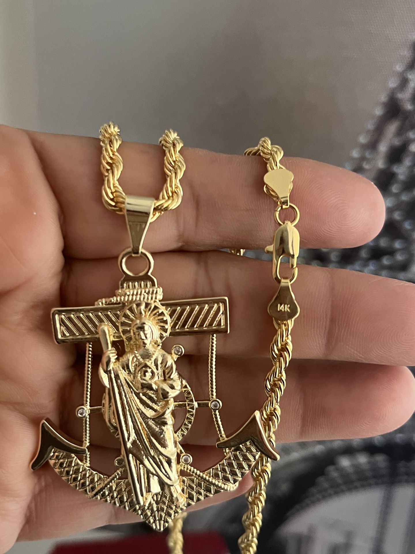 14k oro laminado gold plated rope chain 24inch pendant sz 2.5 inch