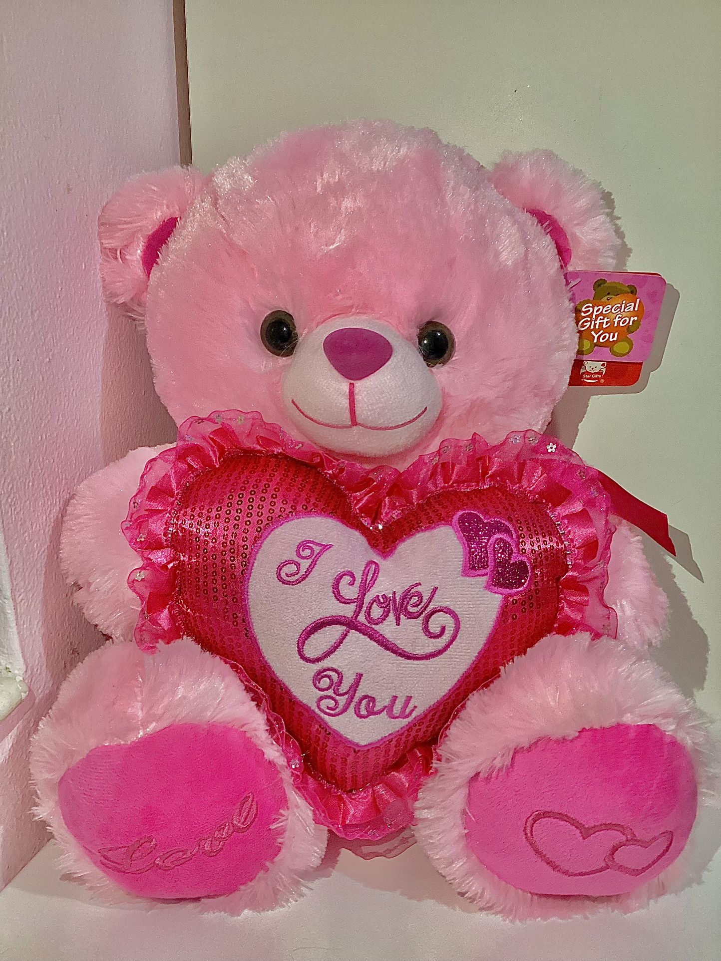16” BRAND NEW PINK FLUFFY TEDDY BEAR SAYING “I LOVE YOU”
