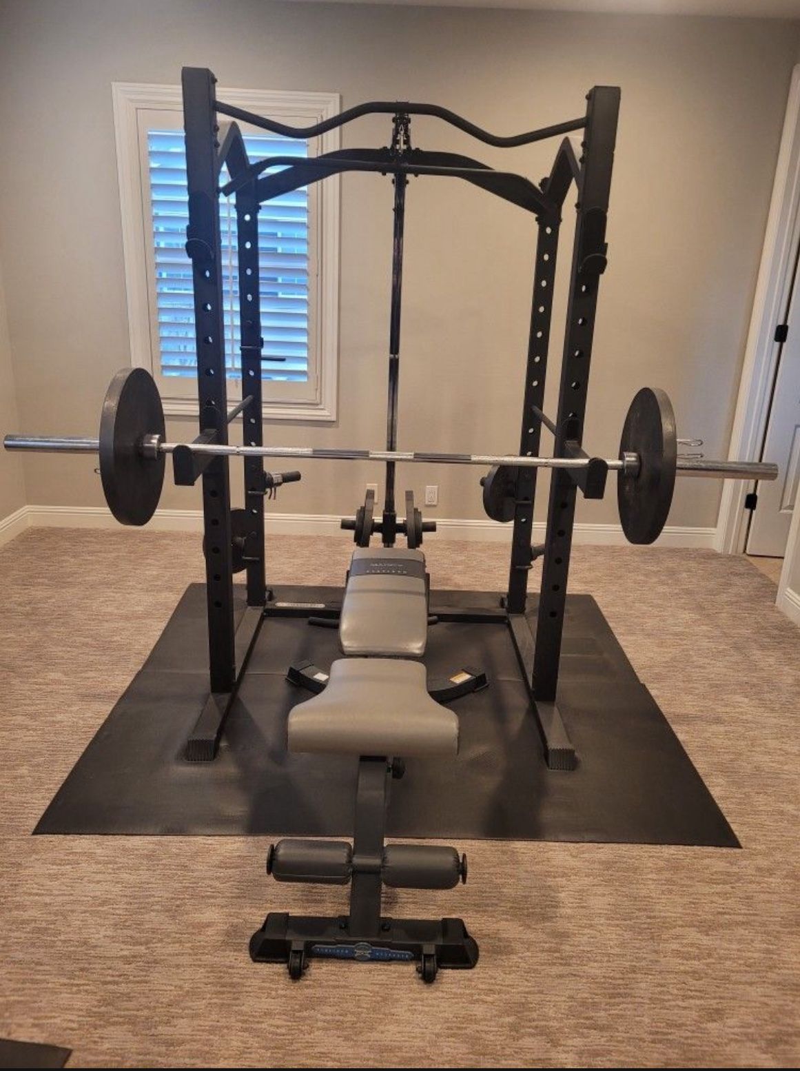 Weight cage with weights for sale 45’s 35’s 25’s 5’s 2.5s $550 obo. Pick up only.