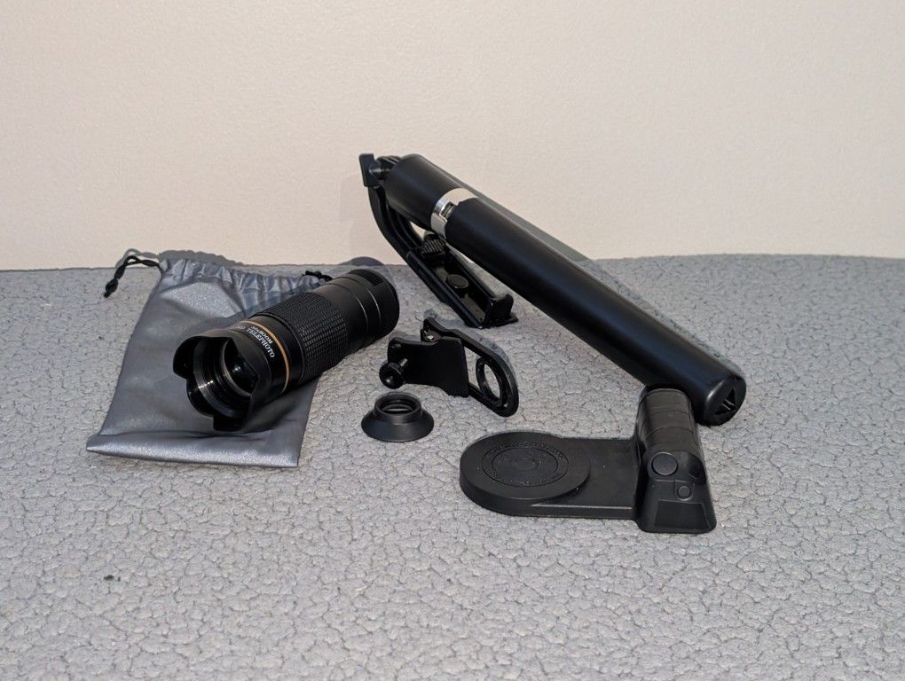 This is a phone attachment that upgrades your phone camera by clipping on and adds X36 Zoom!! I've only used it a few times Zero sign in use Comes with lense clipper bag magnet grip, and phone holder stand