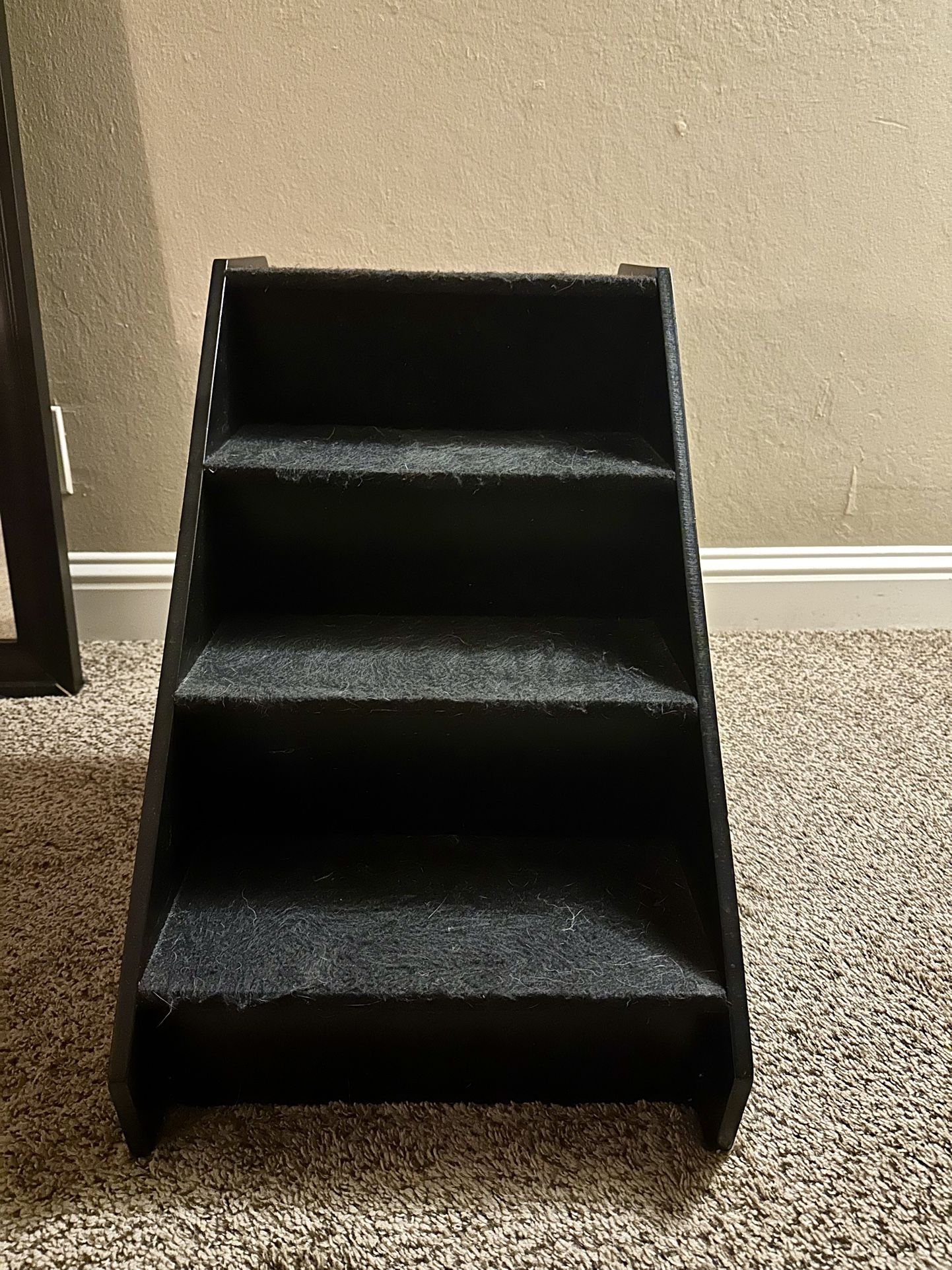 Used 4 step staircase for your pet to help them get up onto the sofa or bed. It’s has light carpet to help prevent your pet from slipping. Holds up to 80 pounds. Pick up / meet up only.