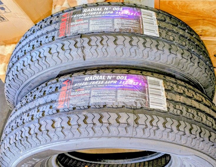 ~~~ OR Just a "10 ply" = St225x75xR15 radial trailer tires are only $87.85 ea ~~ New Trailer Tire / wheel Combo Set = 1 ea. new St205x75xd15 " mounted on 1 ea. New white 15" , 5 on 4.5 lug wheels , for only $117.85 O.T.D. ~~ Or I have the New RADIAL St205x75xr15 Trailer Tires. "8 ply" , mounted on New 15" wheels 5 on 4.5 lug pattern , for just $141.85 OTD ~~ or if you just want the Radial Tire St20575R15 " 8 ply " no wheel for only = $77.85 ~~ and Just a New 15" X 5.5" white rim / wheel and silver with a 5 on 4.5 lug pattern , would cost you only - $71.85 -- Or Black - 5 on 5.5 for just $sold *** ALL the above Trailer Tires are NEW 2025 in STOCK , no waiting ! *** Get in touch for more info and pricing ! Be specific ! Please - 60two5748two93