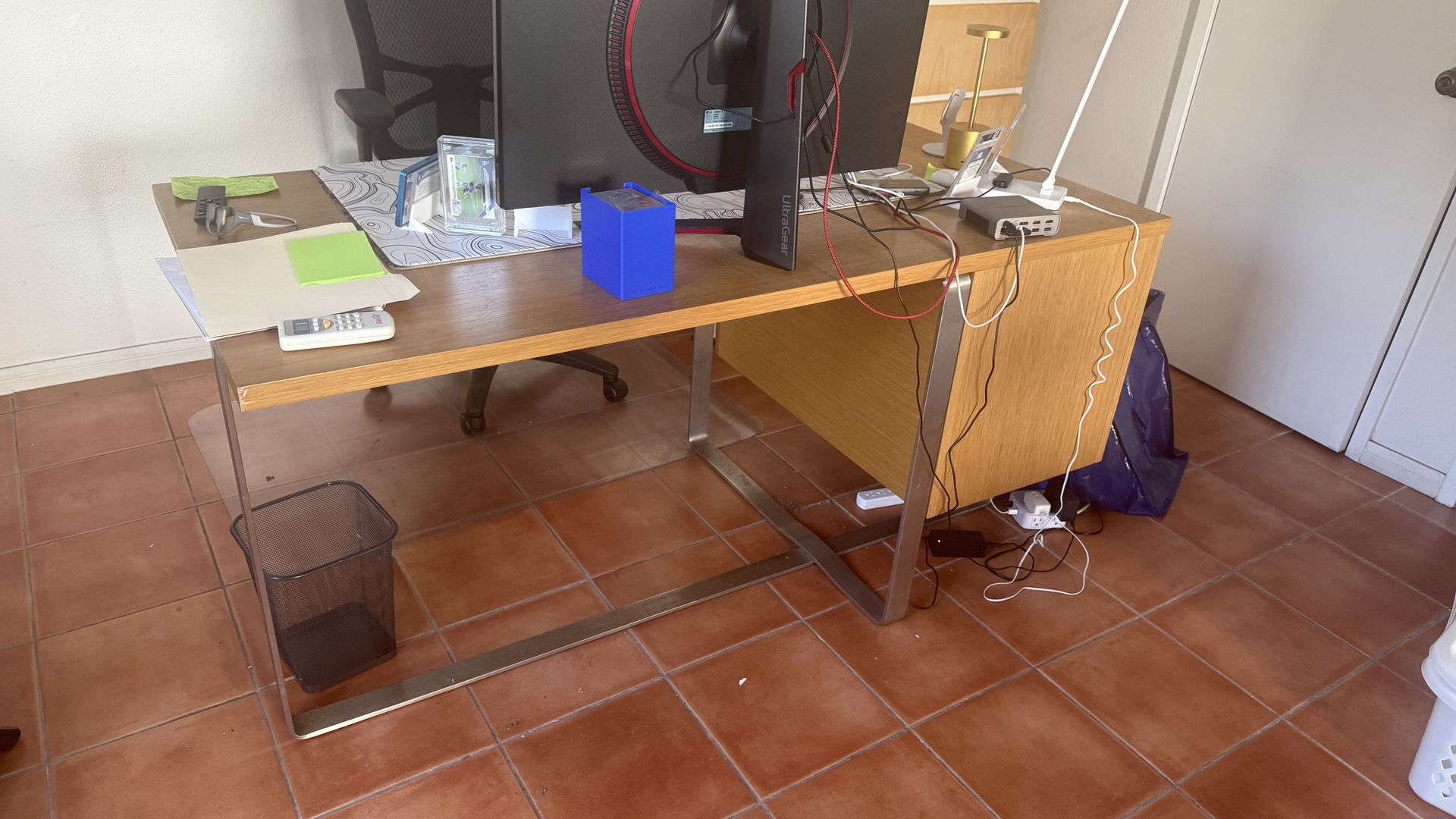 Modern Wood Desk with Drawers – Clean, Minimal Design Selling a beautiful modern wood desk in excellent condition. The desk features a warm oak-toned wood finish, two smooth-gliding drawers for storage, and sturdy brushed metal legs for a clean, contemporary look. It has a spacious work surface that easily fits a laptop, monitor, and additional workspace for writing or paperwork. The design is simple and versatile, making it great for a home office, bedroom, studio, or creative space. Condition: Very well maintained. The surface is clean and solid with only minor signs of normal use. Structurally sturdy with no wobbling. Drawers open and close smoothly. Features: • Two storage drawers • Spacious rectangular top • Modern metal leg frame • Clean, minimalist style • Neutral wood tone that fits many interiors Approximate dimensions: Standard desk proportions (exact measurements available upon request). Reason for selling: Downsizing / redesigning space. Pickup only. Happy to answer questions.