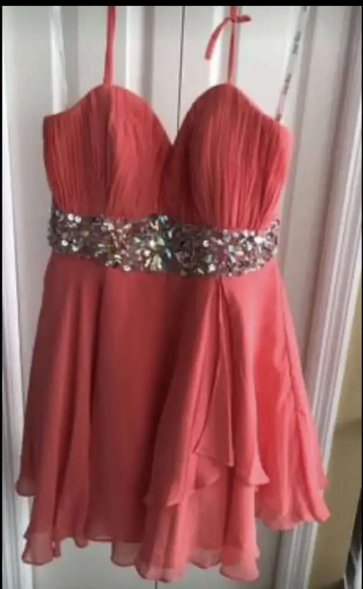 Size XL Peach with silver trim Formal Dress Worn once for a Quince’ Pet & Smoke Free Home Retail $ 115 Selling for $ 45