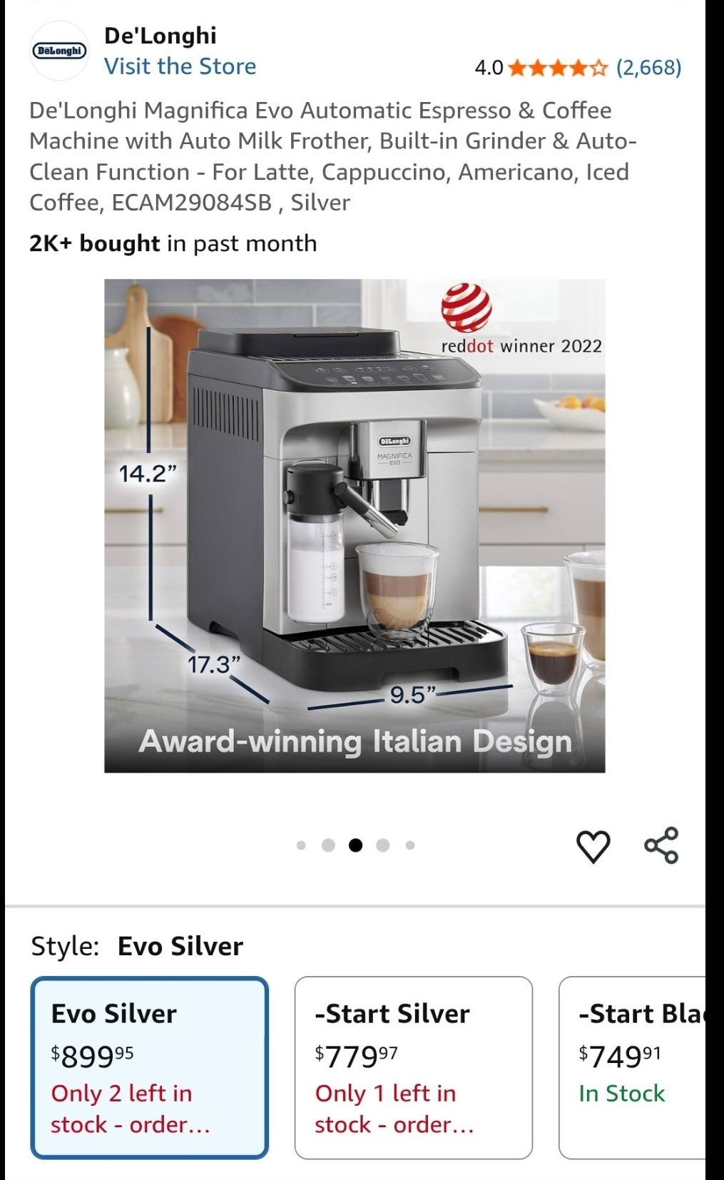 De'Longhi Magnifica Evo Automatic Espresso & Coffee Machine $500