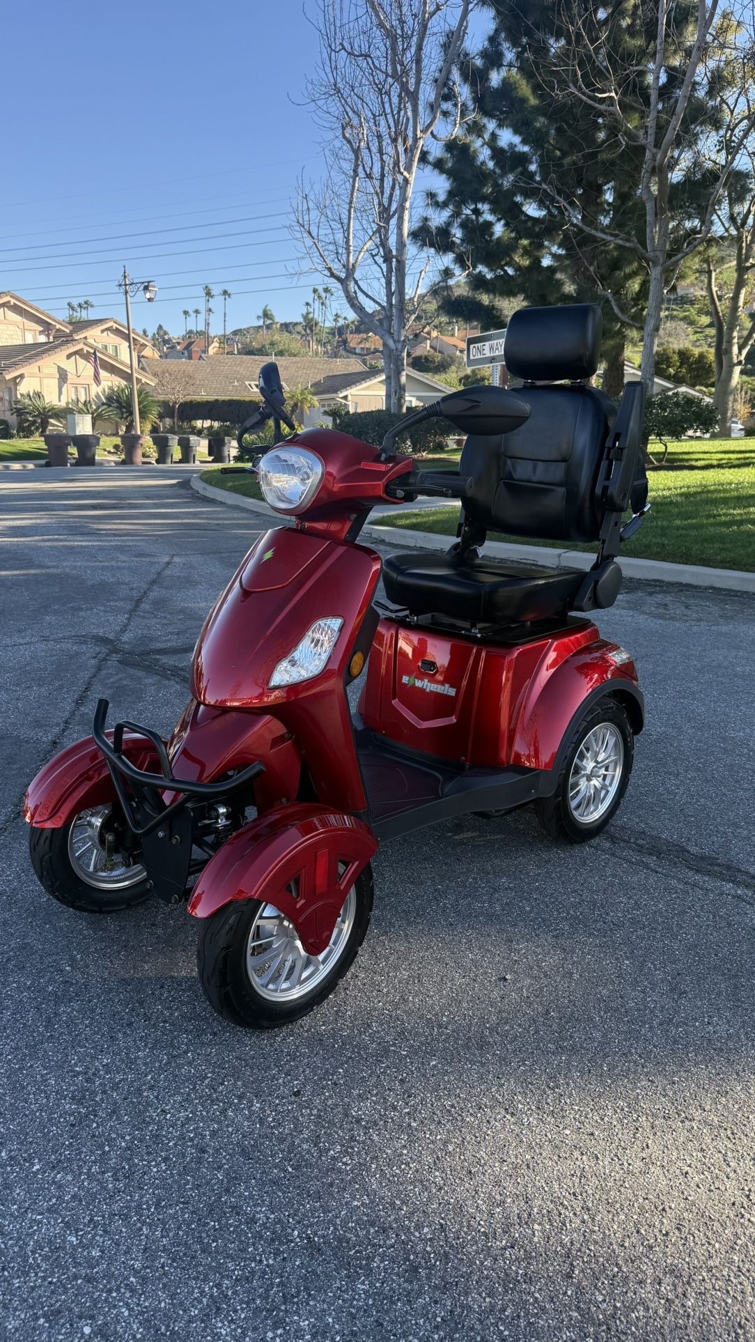 Like-New E-Wheels Scooter – $2,650 Perfect for seniors! For sale is a like-new E-Wheels mobility scooter, originally purchased for $3,500, and only test driven. Bought in 2020, it has been garage kept, exceptionally well cared for, and remains in near-new condition. This is a powerful, all-terrain scooter designed for comfort, stability, and long-range performance—ideal for both indoor and outdoor use. Key Features: • Brand new upgraded batteries • Up to 40-mile range on a single charge • Top speed: 15 MPH with 3 speed settings (5 / 9 / 15 MPH) • 400 lb weight capacity • Four-wheel design for maximum stability • Full suspension – smooth, comfortable ride • Powerful motor – easily handles hills and steep driveways • All-terrain capable with 16 inch wheels and a 12-degree climbing angle Comfort & Convenience: • Adjustable folding captain’s chair • Lift-up armrests • Variable hand-throttle for precise control • Electromagnetic brakes with Electric Brake Assist for safe, reliable stopping • Travels easily through doorways Safety & Storage: • Front LED headlights • Rear lights and front & rear turn signals • Dual mirrors • Key on/off ignition • Secure under-seat storage • Lockable rear trunk • Large rear basket • Cell phone holder • Two sets of keys Dimensions - 63" × 28" × 42" (LxWxH) Condition: ✔ Only test driven ✔ Runs perfectly – no issues ✔ Clean, solid, and reliable This scooter was lightly used and then stored, offering substantial savings over the original $3,500 purchase price while delivering dependable, high-performance mobility. Price: $2,650 Serious buyers only. Excellent value for a barely used, fully equipped scooter.