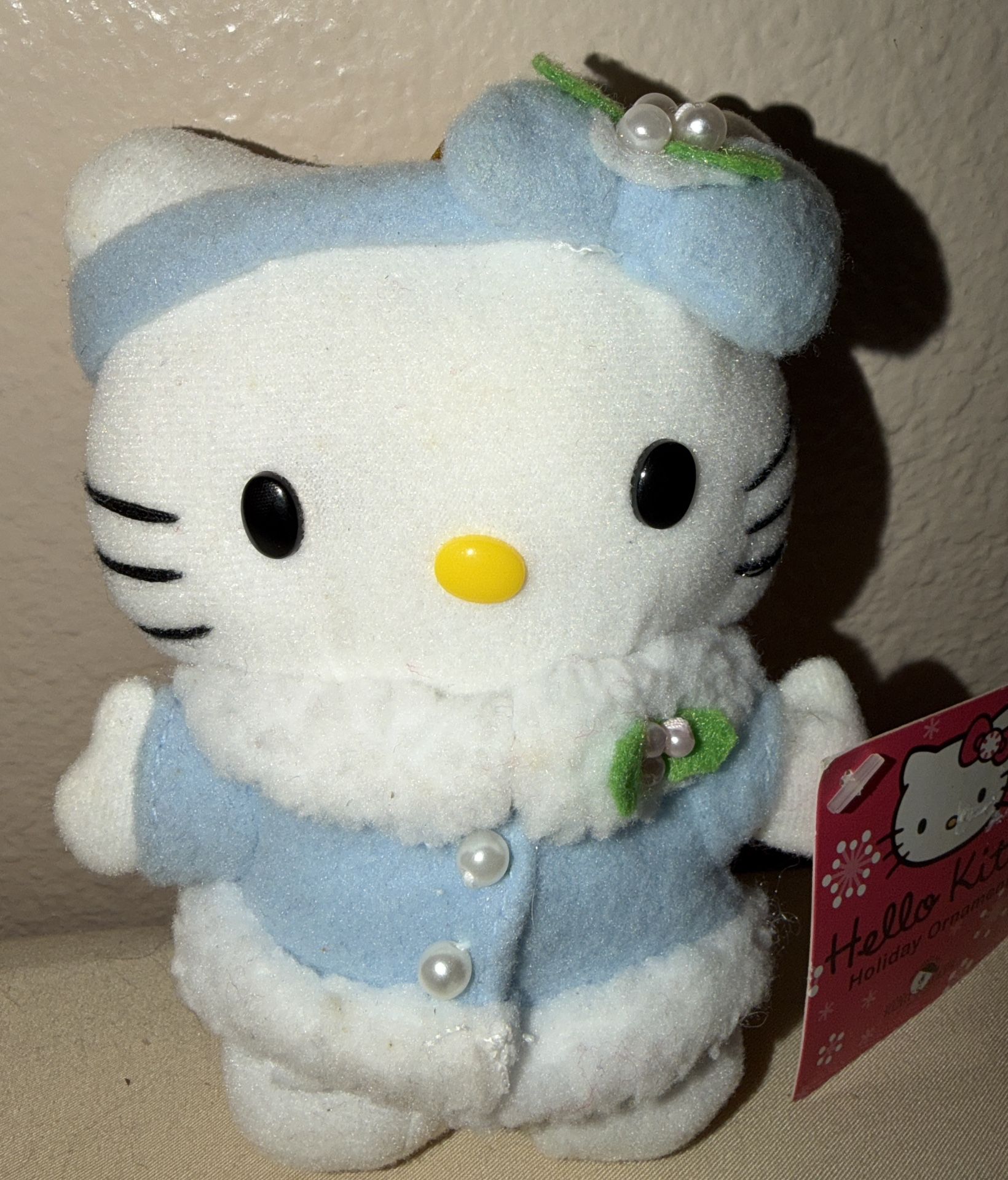 Vintage 2005 Sanrio Hello Kitty Blue Christmas Plush Doll Ornament 4” NWT