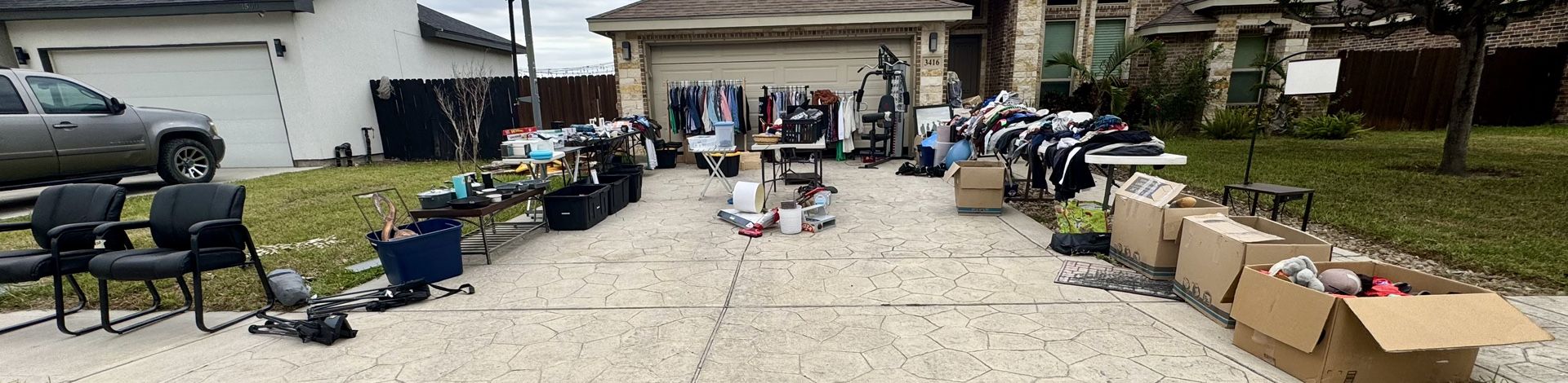 Off of Nolana between ware rd and Bentsen rd. Everything must go! Clothes, shoes, TVs, toys, etc.