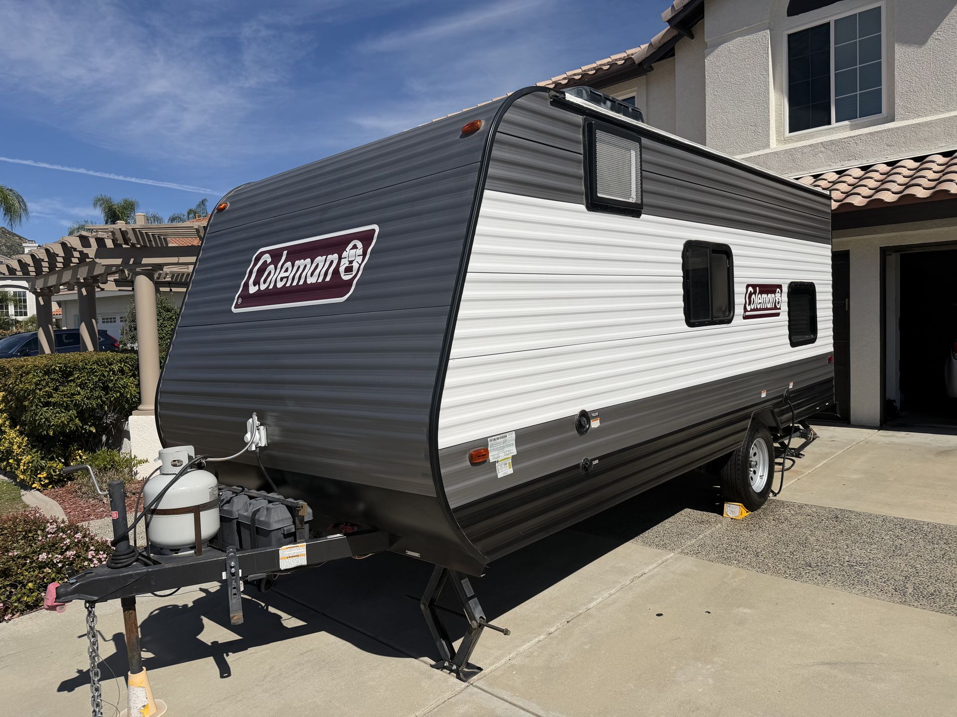 2021 Dutchman Coleman 17B RV Queen bed, double bunks….all with upgraded foam mattresses. Steel framed Futon Couch ( upgrade ). Custom storage compartments and shelves for clothes/towels/shoes, etc. unit has dual, upgraded Gel Cell Optima batteries. Solar hook up, with 100w portable charger. AC, Electric Fireplace-Heater. Brand new 15” wheels and tires ( matching spare ) more plies-weight capacity. New upgraded, heavier duty suspension, for smoother towing.