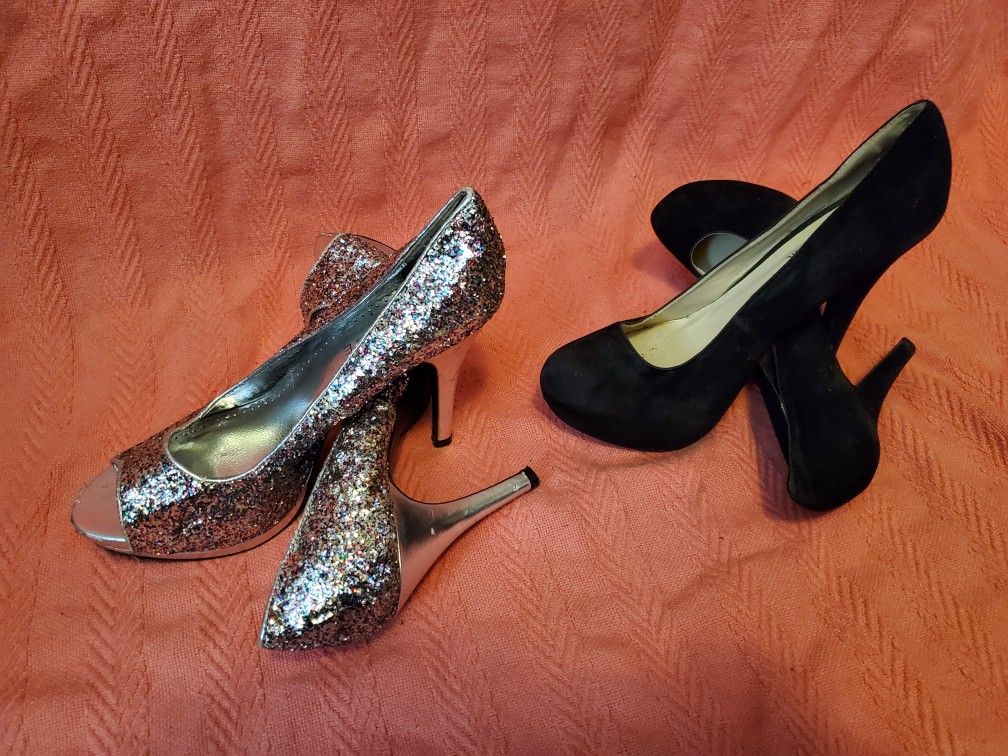 Black heels size 9 sparkly heels size 9 want gone both for $10
