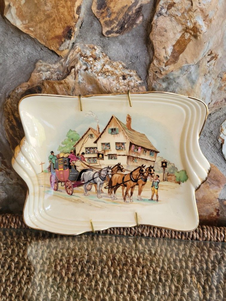 Horse Image Collector Plates - 4 Styles Pic. 1 - 3 - Royal Winton Grimswade Rectangular plate - $30.00 Pic. 4 - 5 - Vintage Betsons Hand Painted Equestrian Horse Bit Brown Black Reticulated Plate - $25.00 Pic. 6 - 9 - Edwardian - 2 famous Herring Hunting Scenes- $30.00 each or both for $50.00 Scroll down ad and click on Seller Profile for additional listings.